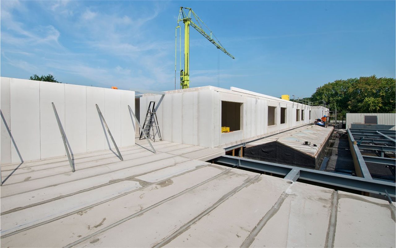 Deze uitdagingen ging aannemersbedrijf Kuipers te lijf via het prefab cellenbeton systeem van Xella genaamd Ytong Casco. De panelen, blokken en dakplaten zijn verbazend licht en brandwerend. De hotelkamercasco’s konden binnen de vier weken afgerond worden. Xella zelf wijst hiervoor naar een slimme logistieke planning, de hoge bouwsnelheid van het eigen bouwteam en naar haar advies om een dekvloer te vermijden door de leidingen voor de vloerverwarming te frezen in de vloeren.