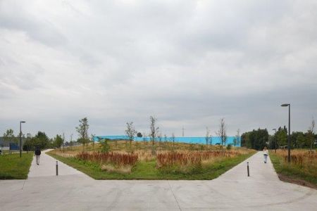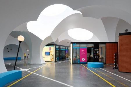 In de categorie ‘Reconversie’ krijgen de gemeente en het OCMW van Oostkamp de titel van laureaat voor het bestuurs- en dienstencentrum Oostcampus. De keuze van de gemeente Oostkamp om het gemeentehuis, OCMW en administratie in een voormalige industriële loods onder te brengen, is op zijn minst ongewoon te noemen. Maar ook de uitwerking van het project door de Spaanse architect Carlos Arroyo (met ELD), gekozen via een Open Oproep van de Vlaams Bouwmeester, springt uit de band. Binnenin de industriële doos werd een volledig artificieel decor gecreëerd van elkaar doordringende sferische ruimtes. Ze vormen een overdekte semi-publieke ruimte die toegang geeft tot alle loketten en representatieve functies. De ruimte buffert het binnen- en buitenklimaat en levert een energie-efficiënt gebouw op. Maar het nieuwe gemeentehuis is meer dan een opvallend interieur. Op de ‘Oostcampus’ wordt niet enkel een voormalig logistiek centrum herbestemd tot publiek domein, er wordt tegelijk nieuwe betekenis verleend aan het uitgesmeerd ruimtelijk patroon van de gemeente. Net zoals vele kleine gemeentes in Vlaanderen, is Oostkamp een lokale verdichting in een netwerk van wegen, bouwlinten, woon- en werkverkavelingen. Om in dit verspreide patroon een nieuw ijkpunt te plaatsen, kiest Oostkamp niet voor één van de kerktorens maar voor het doorbreken van de tegenstelling tussen centrum en periferie.