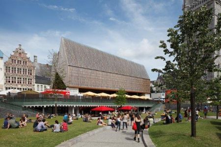 Over het Emile Braunplein, de Korenmarkt en de open ruimte tussen de historische torens van Gent is reeds veel inkt gevloeid, over verstoorde stadsgezichten, over verdwaalde klokken, over vermeende houtwormen. Strubbelingen die onderhand tot de prille mythologie van het project zijn gaan horen. In 1997 werd het plan om hier een ondergrondse parking met plein erboven aan te leggen in een referendum weggestemd. De stad nam de gelegenheid te baat om een nieuw omvattend planvormingstraject op gang te trekken. Er kwam een nieuw masterplan, met dit keer het openbaar vervoer en de fiets centraal, en uiteindelijk een wedstrijd met Robbrecht en Daem architecten en Marie-José van Hee als laureaat.