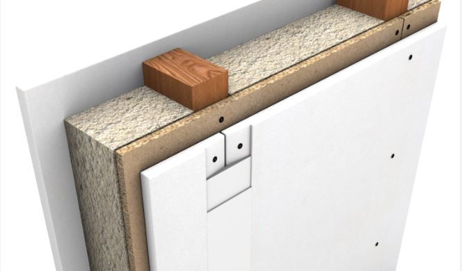 Op die OSB-plaat wordt dan nog een bijkomende PROMATECT-100-plaat geniet. Tussen beide zijden komt ten slotte een isolatie op basis van cellulose.