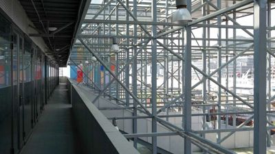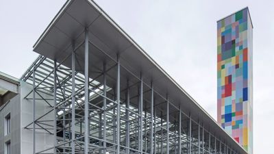 Doorlopende balkons sieren de gevels, zodat ze in de zomer volledig geopend kunnen worden. Dit maakt dat het gebouw eruitziet als een stapeling van grote terrassen. Het ingangsmonument, een kleurrijk verticaal prisma, biedt plaats aan 42 auto's of extra horecaruimtes met zicht op de haven.