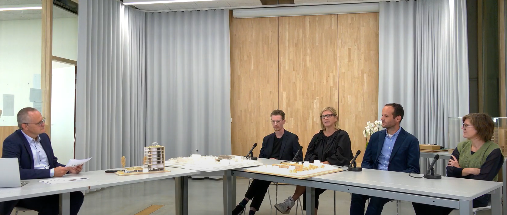 Uit het publiek kwam de vraag of duurzaam en circulair bouwen niet altijd de duurdere oplossing. Daar waren onze praatgasten stellig over. “Nee, dat zou het althans niet mogen zijn”, zei Ilze. “We zitten nu wel in een transitieperiode waarbij nog niet alle fabrikanten op dezelfde lijn zitten, maar ik ben ervan overtuigd dat we circulaire gebouwen zelfs op de korte termijn kunnen realiseren voor dezelfde prijs. Het heeft veel te maken met het bepalen van je prioriteiten en het kiezen van de juiste partners. En nog belangrijker: op tijd met alle partners aan tafel zitten om te bepalen hoe je daar geraakt. Maar daar komt ook een juridisch aspect bij kijken. Circulariteit moet een plaats krijgen in openbare aanbestedingen.”