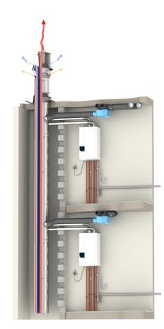 De dag van vandaag kan de kostprijs van een appartement hoog oplopen. In dat opzicht is het sterk aangeraden om de beschikbare oppervlakte zo goed mogelijk te besteden. Volgens Renson en Opsinox zou dit mogelijk zijn door de Triple Flow. De werking ervan gebeurt via drie kanalen in inox. De rookgassen worden via het eerste binnenkanaal afgevoerd en langs de dakkap uitgeblazen. Op hetzelfde moment voert een tweede binnenkanaal verse lucht aan voor de gasketel. Het buitenkanaal zorgt voor de afvoer van de vervuilde ventilatielucht. Die lucht vindt een uitweg aan de zijkanten van de dakkap.