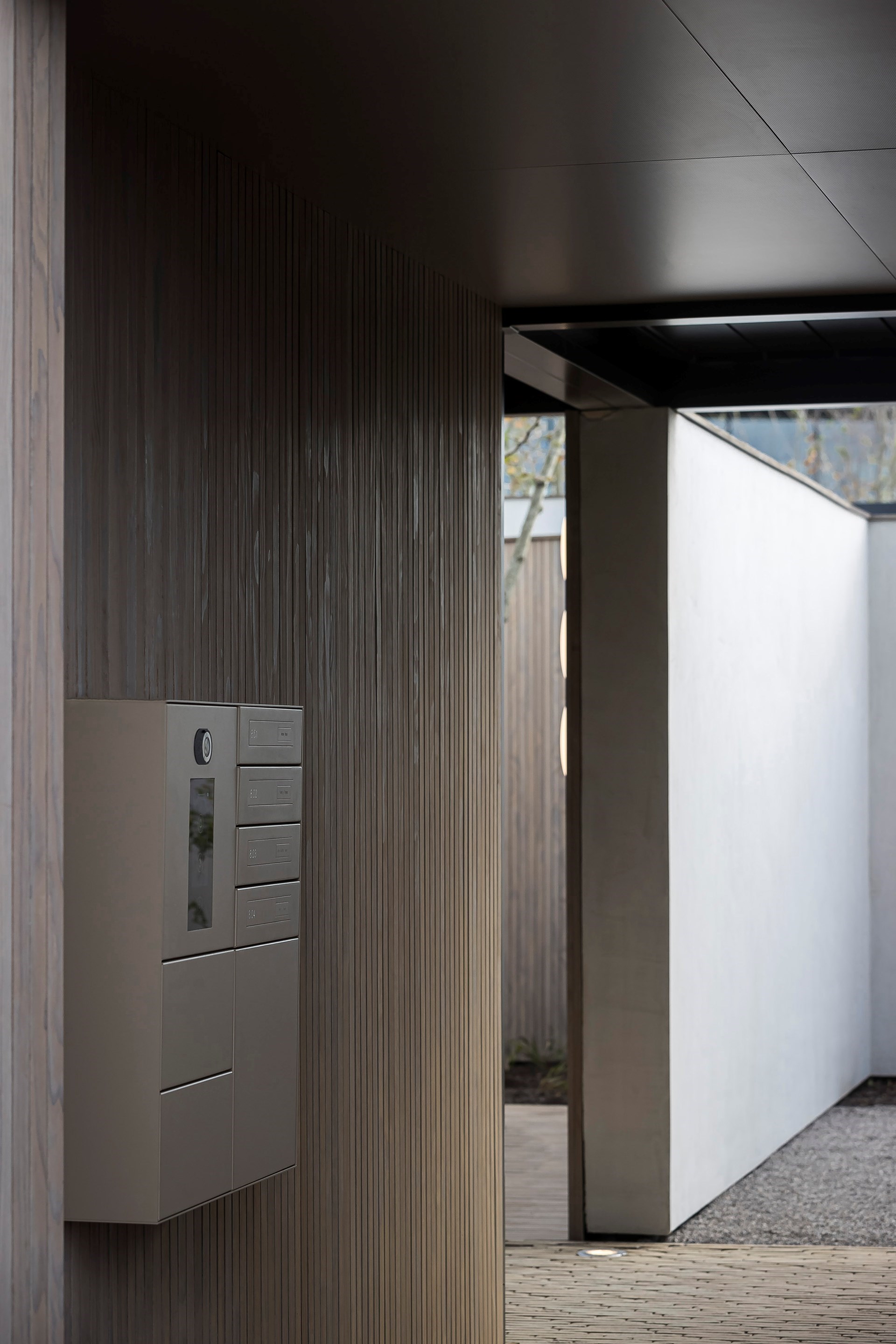 Met Wall combineert eSafe functies als brievenbussen, pakketvakken, deurbellen en videofoon in één stijlvolle, aluminium oplossing voor elke meergezinswoning of appartement. Verkrijgbaar in elke RAL-kleur waardoor het systeem matcht met strak buitenschrijnwerk.