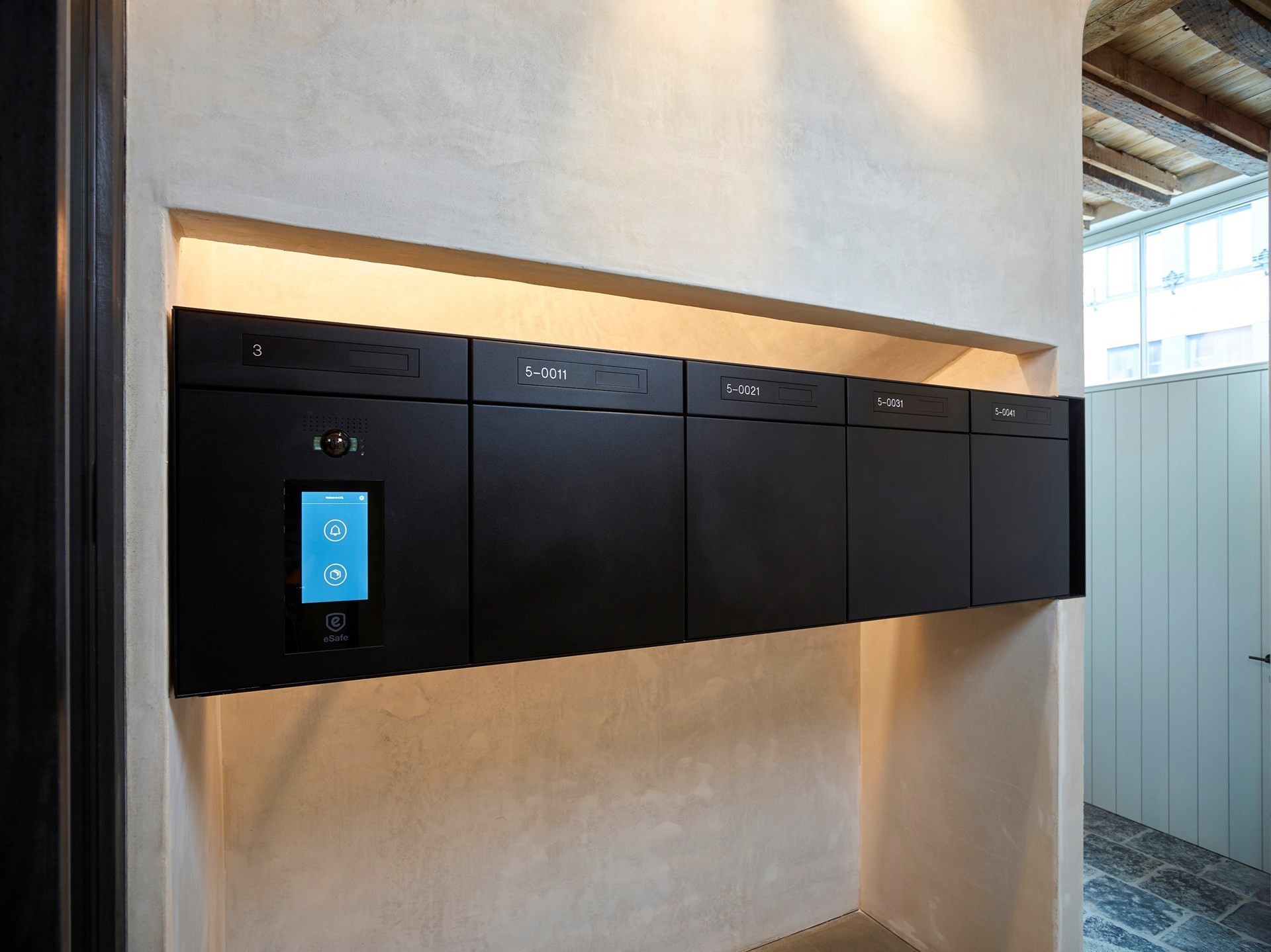 De eSafe Wall is naar keuze in te vullen op basis van de beschikbare ruimte of de gewenste stijl. Bij leveringen verwittigt de eSafe-applicatie en via het beheerportaal kan de syndicus alles opvolgen. Naast afleveren, kan je ook eenvoudig pakketten in de Wall plaatsen en laten afhalen met een code. Een optionele koelingsmodule maakt zelfs het afleveren en afhalen van gekoelde producten mogelijk. De Wall als buitenmodule kan ook uitgerust worden met een afdak.