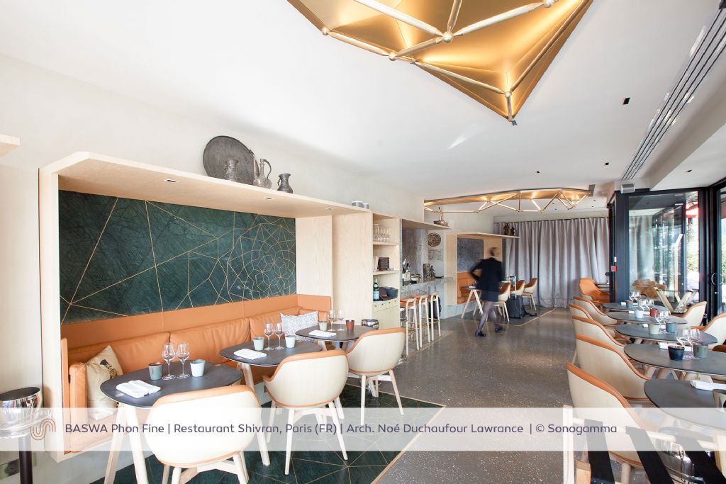 Kortom, restaurantuitbaters hebben er alle baat bij om bij de inrichting van hun restaurant rekening te houden met de akoestiek, zodat gasten in alle rust en comfort ten volle van hun maaltijd kunnen genieten. Gelukkig bestaan er verschillende esthetische oplossingen om de ruimteakoestiek te verbeteren. Of men nu kiest voor een naadloos integreerbaar BASWA Phon systeem met marmerzandafwerking, trendy translucente akoestische honingraatpanelen of flinterdunne buigbare panelen uit gesinterd aluminium, bij Sonogamma vindt u talloze exclusieve, moderne en kwalitatieve akoestische oplossingen voor elk nagalmprobleem zodat uit eten weer een plezier wordt.