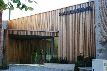 De restauratie van de Sint-Lambertuskerk ging samen met de bouw van een nieuwe parochiezaal, die via de sacristie aan de kerk grenst. De gevel is bekleed met verticale Thermowood-planken, die door hun verschillende breedte een intrigerend visueel effect creëren.