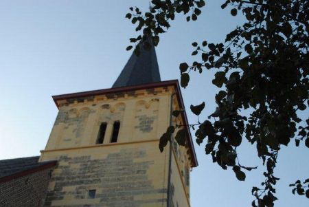 De toren doet met zijn afwisseling van oude grijze en nieuwe lichtgele stenen denken aan een lappendeken. De kogelgaten in de oude stenen getuigen van de vele oorlogen die op dit grondgebied zijn uitgevochten.