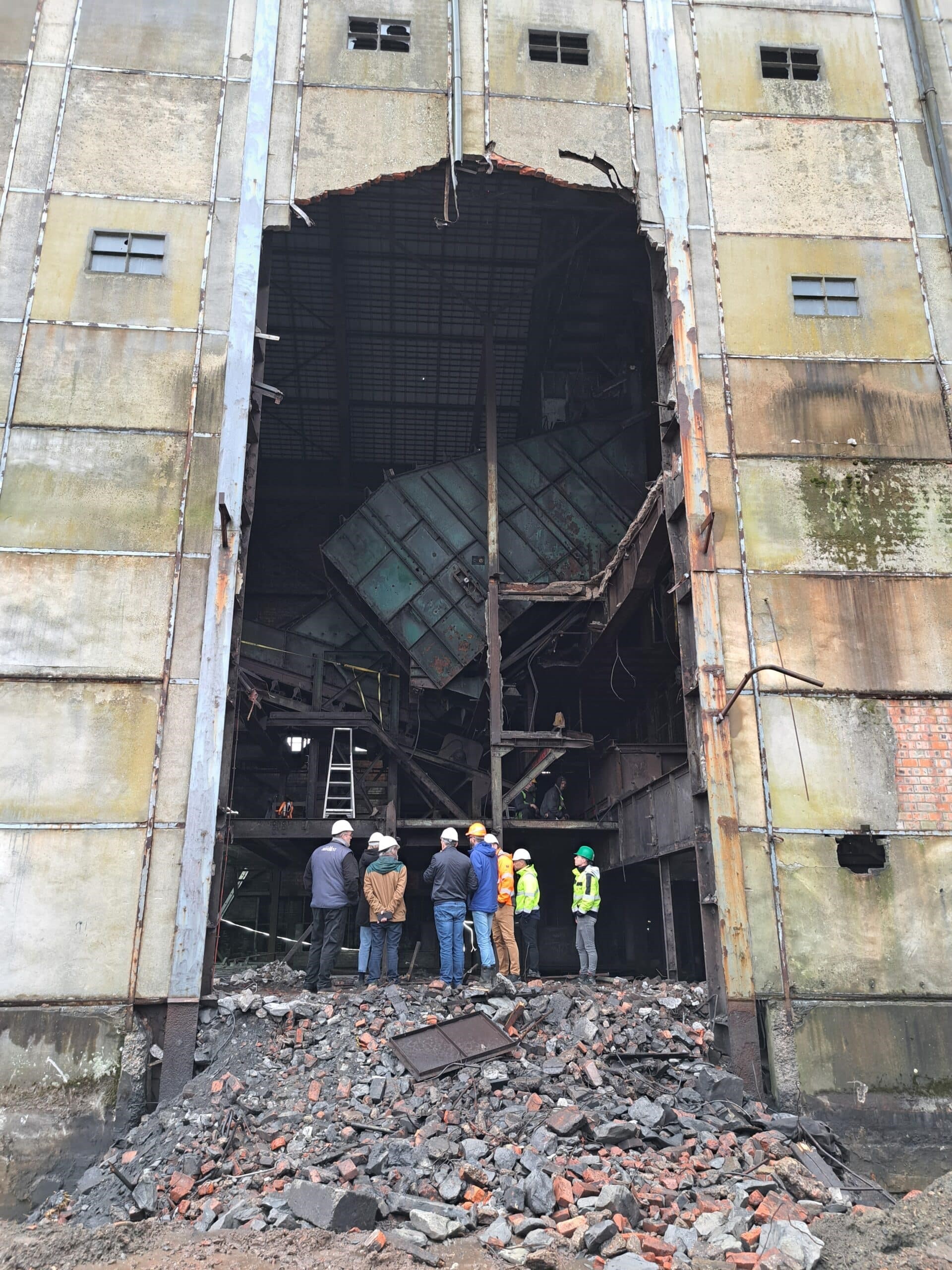 - Het volledig ontmantelen van het ontvangstgebouw (aan de voet van de schachtblok), op de gebouwstructuur na