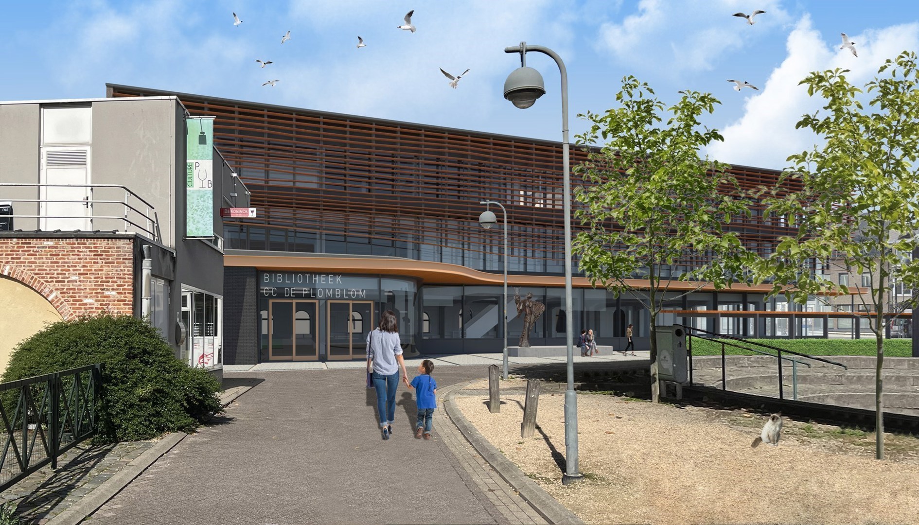 De bibliotheek van Ninove, gelegen in een steegje tussen de Graanmarkt, de Edmond De Deynstraat en de Despauteerstraat in het centrum van de stad en ooit nog een lampenfabriek, was al langer aan een renovatie toe. Ze deelt immers al jaren haar inkomsas met het cultureel centrum en dat zorgt niet alleen voor moeilijke afsluitbaarheid en occasionele overlast, maar de bib mist daardoor ook een eigen gezicht. De vernieuwing van de bib maakt een einde aan die twee problemen en geef het gebouw ook een energetische en bouwfysische update.