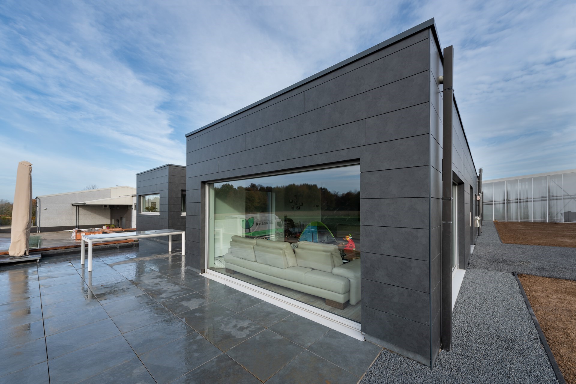 In Merchtem kunnen professionele tuiniers, marktkramers en tuincentra terecht bij plantenkwekerij De Koster voor traditioneel en biologisch plantgoed. De familie De Koster – Van den Hende woont als eigenaar van de kwekerij in een aanpalend houtskeletgebouw. Door gezinsuitbreiding werd de woning echter te klein waardoor een verbouwing zich opdrong. Na een intakegesprek waarin de eigenaars hun wensen en ideeën op tafel legden, besloten ze de realisatie van het nieuwe ontwerp toe te vertrouwen aan Elke Vonck, architect bij Elke architectuur. Zij schreef Rockpanel Stones-panelen voor als gevelafwerking. In de kleur Basalt Anthracite verlenen ze de uitbreiding een modern karakter.