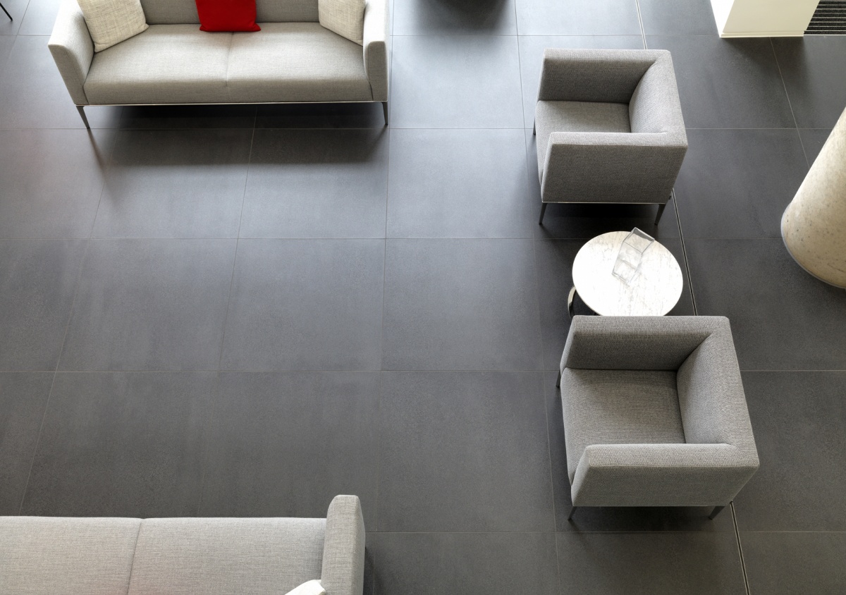 Voor de entree kozen we voor de grotere (90 x 90 centimeter) Ultragres Quartz-tegels in de kleur anthracite black. Deze tegels bevatten kristalachtige deeltjes. 's Avonds vangen deze deeltjes het licht en maken ze de ruimte levendiger. FLINT heeft al eerder met Mosa gewerkt. Wat we zo waarderen aan Mosa, is hun aandacht voor innovatie, kwaliteit en duurzaamheid. Hun tegels zijn altijd eigentijds en architecturaal, ongeacht het formaat of de kleur, en hebben tegelijkertijd een ambachtelijke en tijdloze uitstraling.”