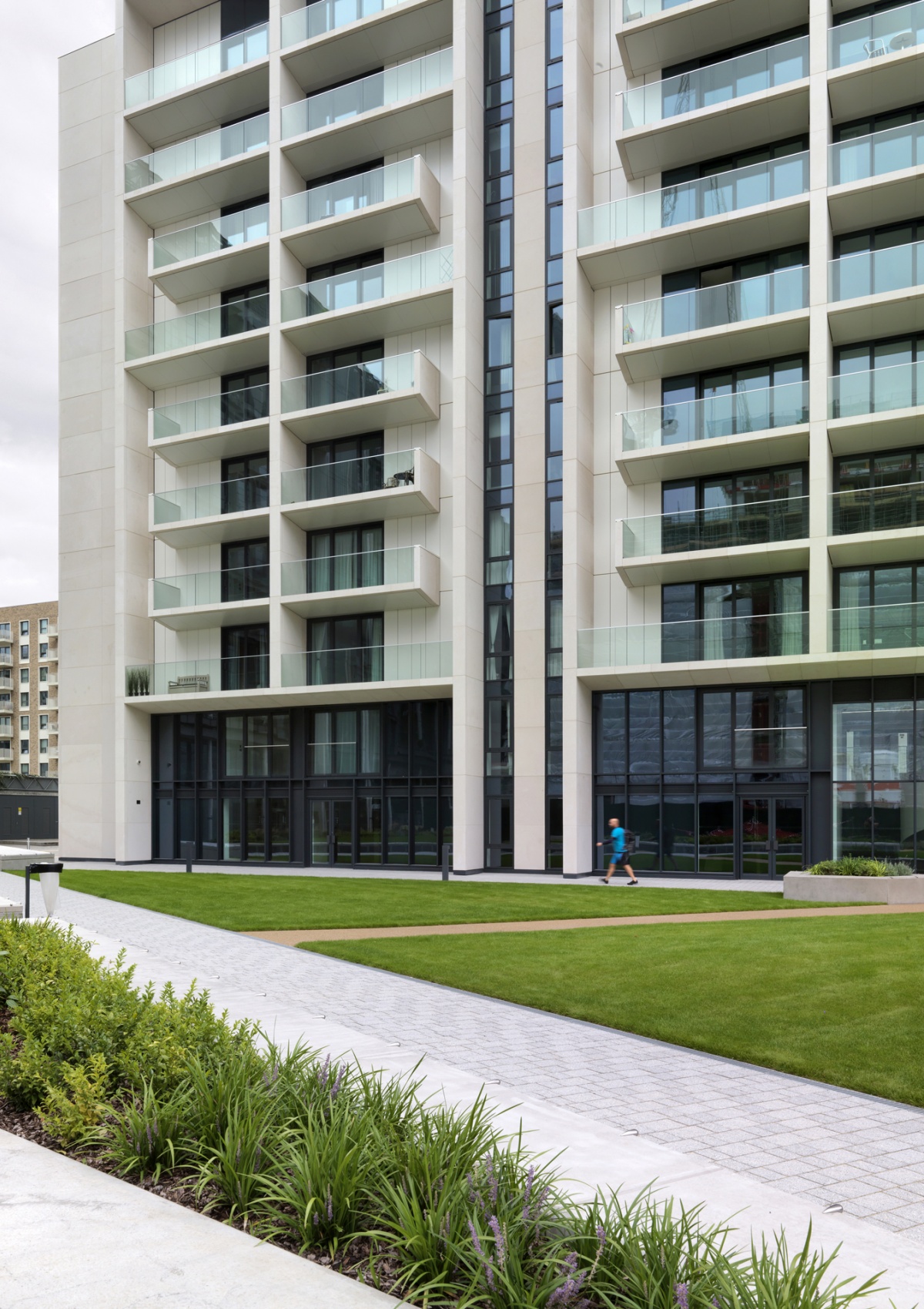 “Voor ons werk bestaat er geen perfecte formule; we pakken elk project anders aan. We doen veel onderzoek en denken goed na over de context, de briefing en de toekomstige gebruikers. Daarna volgt de verkenningsfase: we tekenen ‘de route door een gebied’, met uitzichten en kernpunten. Wembley Park is een groeiende wijk nabij het centrum van Londen die erg in trek is bij jonge professionals. De briefing van onze klant, en ook de marketingspecialisten waar we mee hebben samengewerkt, was duidelijk; de ontwerpstrategie legt de nadruk op het belang van een open leefruimte. De focus ligt op het samenspel tussen de ruimte, de ligging, het licht en een palet van hoogwaardige materialen."