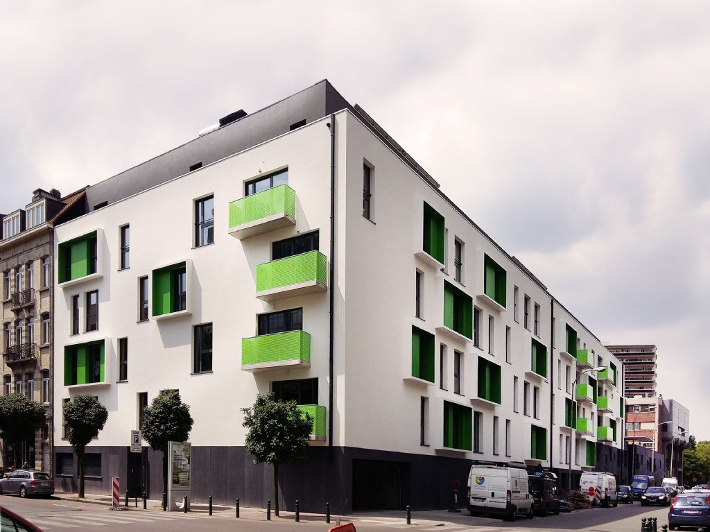 Architectenbureau A2M ontwierp in Brussel een gebouw dat zowel een basisschool als 51 appartementen herbergt. Het frisse gebouw met groene tinten blaast nieuw leven in de Brusselse Noordwijk.