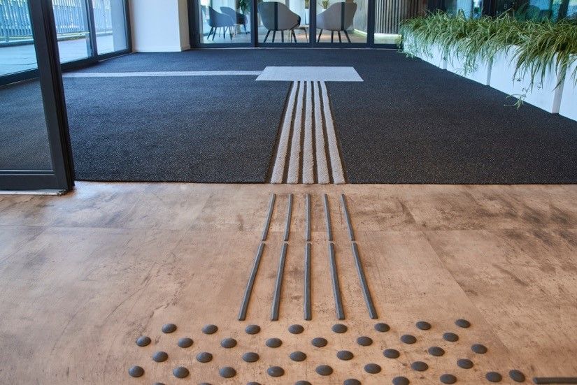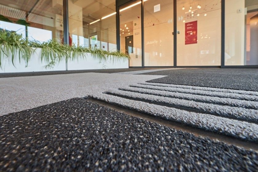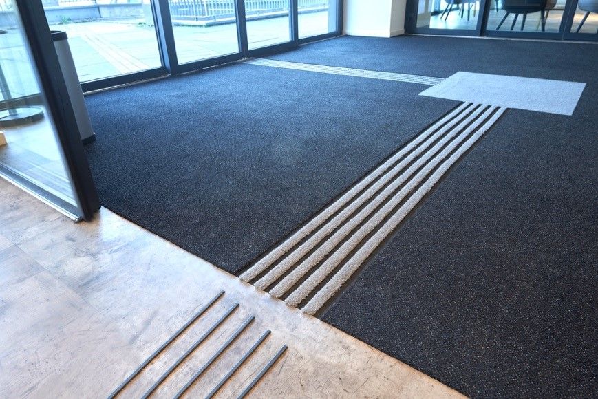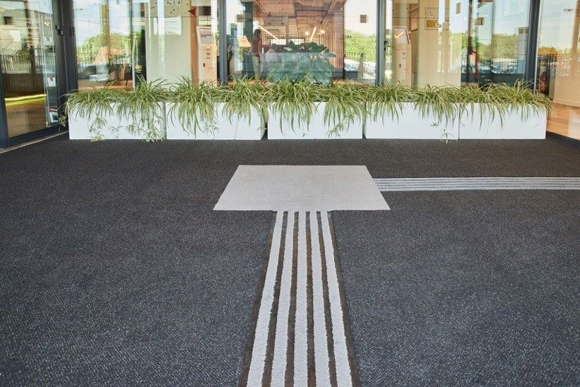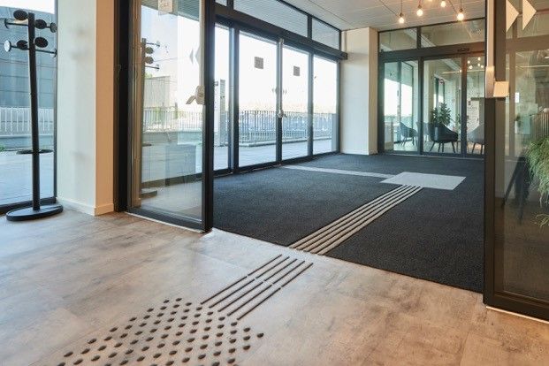 Een primeur in de Benelux met twee functies in één: een schoonloopzone in combinatie met gidssysteem, de emco MAXIMUS, geplaatst bij het Administratief Centrum te Brugge. Een perfecte oplossing voor mensen met een visuele beperking. Zij kunnen nu aan de mat voelen waar ze zijn en zich daardoor goed oriënteren. Bovendien zorgen de contrastkleuren voor een geleiding voor slechtzienden en begeleiding van mensen.