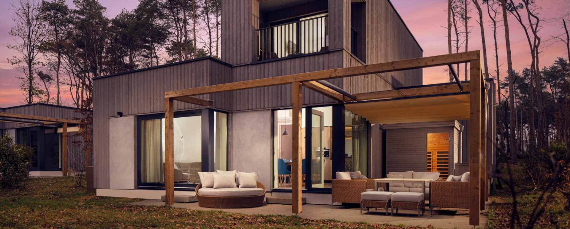 Binnenkort opent Terhills Resort by Center Parcs in Dilsen-Stokkem officieel de deuren, een vakantiepark in het groen met een sterk duurzaam karakter. De sfeervolle woningen tonen hoe een modulaire opbouw kan bijdragen aan een andere meer circulaire manier van bouwen. Die correlatie tussen modulair bouwen en duurzaamheid vormt het uitgangspunt van een interactief webinar voor ontwerpers, aannemers en andere bouwprofessionals dat vier betrokken bouwbedrijven, EQUITONE, Machiels Building Solutions, Tectum en Willemen met ondersteuning van Redactiebureau Palindroom en Medialife op 22 juni organiseren. Het webinar kan gratis gevolgd worden door iedereen die zich vooraf inschrijft.