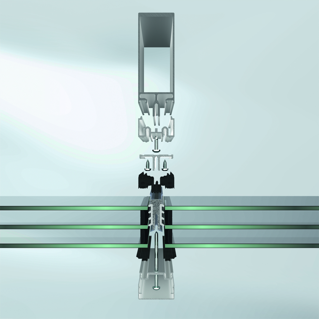 De adapterprofielen worden mechanisch geschroefd in plaats van verlijmd of gekit. Dankzij deze droge verbindingen kunnen glas, isolatoren en aluminium profielen aan het einde van hun levensduur eenvoudig worden gescheiden. Dat maakt hoogwaardige recyclage mogelijk en voorkomt waardeverlies in de materiaalketen.