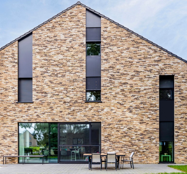 ShutterX wordt volledig geïntegreerd in de spouwmuur en is in opgerolde toestand geheel onzichtbaar, zowel aan de binnen- als buitenzijde. Zelfs de onderlat verdwijnt volledig in de kast, wat resulteert in een zuiver gevelbeeld zonder zichtbare rolluikelementen.