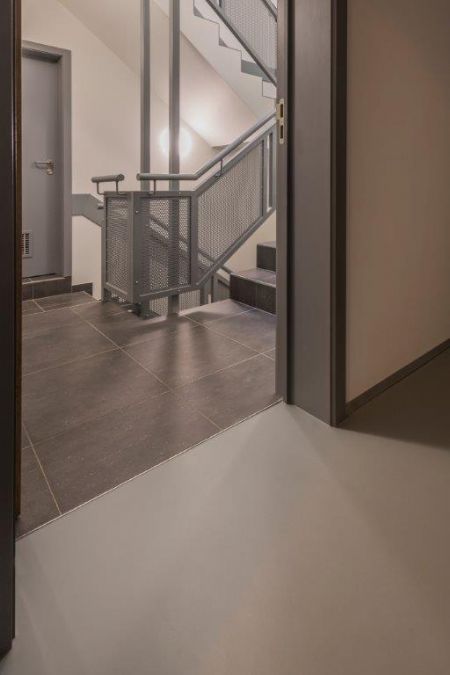 Het ComfortFloor-systeem van Sika biedt een onderhoudsvriendlijke oplossing. Eerst werd het bestaande beton geschuurd en gestofzuigd om daarna een basislaag van Sikafloor-161 aan te brengen, een epoxyhars zonder solventen. Daarboven werd de zeer elastische Sikafloor-330 gegoten, een polyurethaanhars met laag VOS-gehalte. Na uitharding werd het geheel overdekt met Sikafloor-305W, een gekleurde toplaag met een gladde, matte, slijtvaste en onderhoudsvriendelijke afwerking.