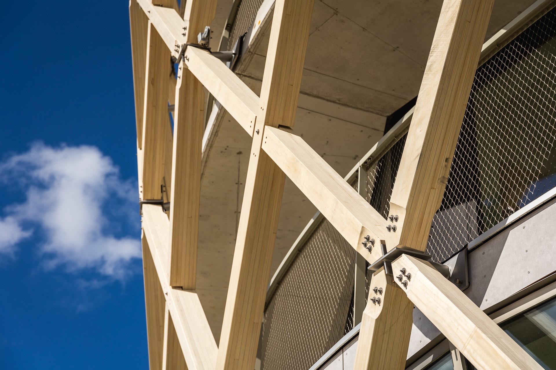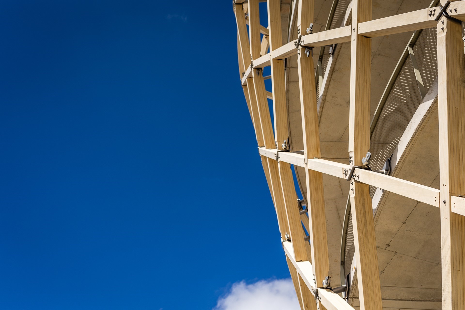 “De complexiteit en het streven naar efficiëntie vereisten gedegen projectmanagement als interface tussen alle betrokken partijen. Het was een kwestie van duidelijke prioriteiten te stellen bij planning, inkoop, productie en assemblage. En de juiste beslissingen nemen op het juiste moment. Met name de opdeling van het hele bouwwerk in drie bouwfasen maakte voltooiing vóór de openingsceremonie mogelijk. Dat betekende echter een grotere inspanning bij de uitvoering van het project, omdat veel processen meerdere keren moesten worden gestart, zoals meerdere deelorders voor bevestigingsmiddelen en stalen onderdelen of de overdracht van meerdere productiedatasets enzovoort. De goede samenwerking tussen de partijen was de sleutel. Alle neuzen in dezelfde richting om in korte tijd de gewenste resultaten te boeken. Ondanks het strakke tijdschema hebben we het project binnen een jaar gerealiseerd”, aldus HESS TIMBER.