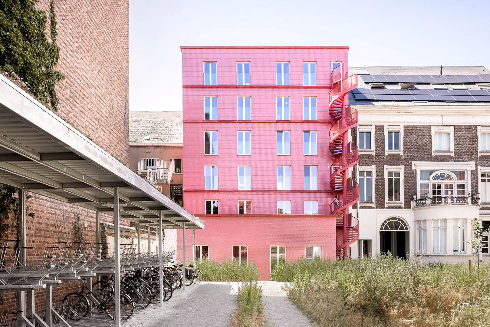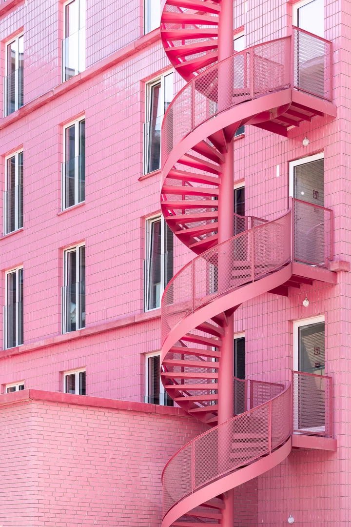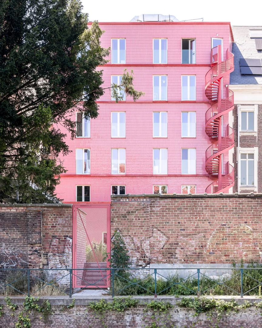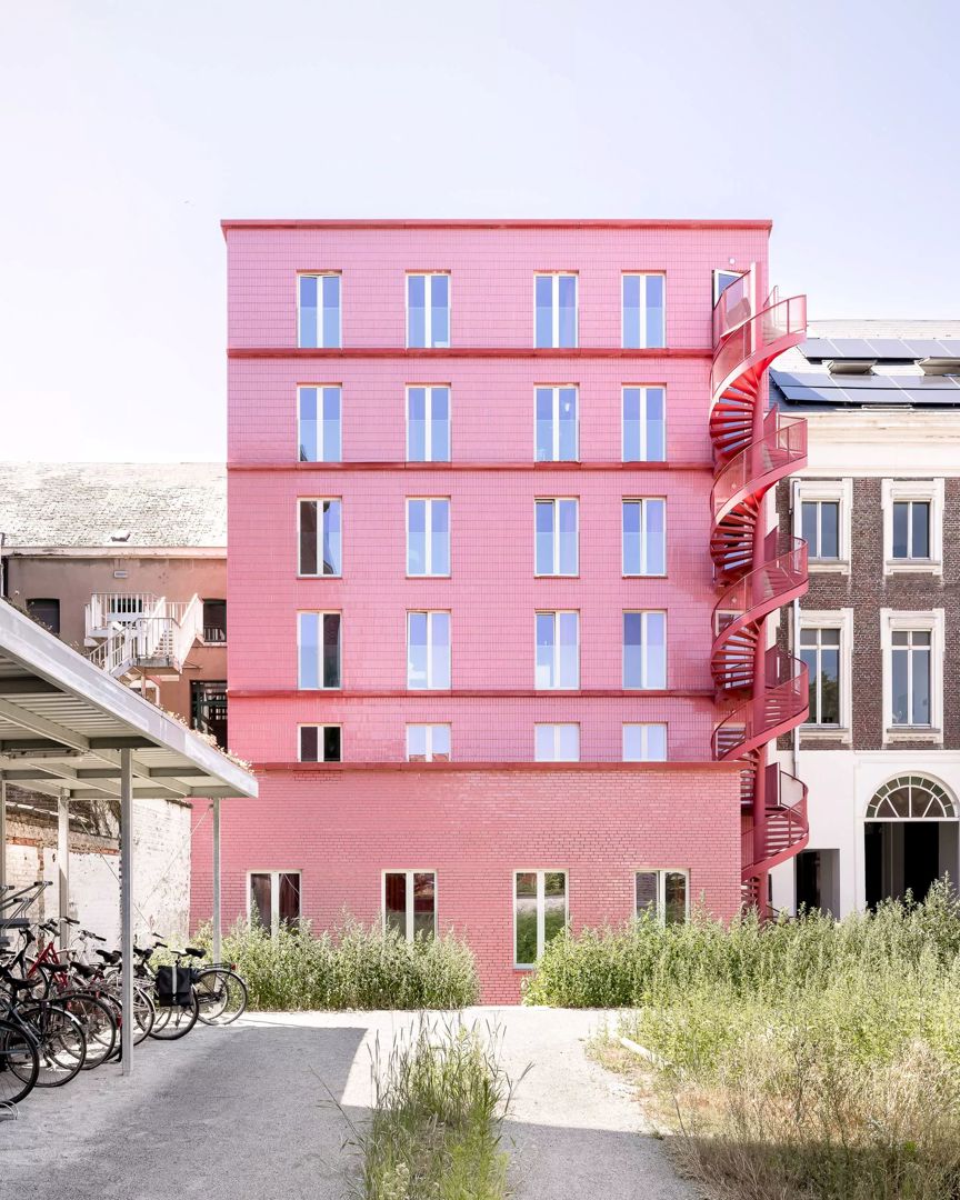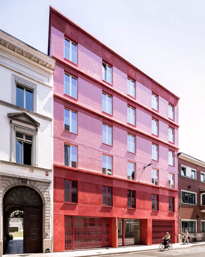 Aan de achterzijde krijgt het project een expressieve toets dankzij een sculpturale, slingerende trap die het geheel een lichte dynamiek geeft. Zowel voor- als achtergevel zijn uitgewerkt in duurzame, tijdloze materialen, met veel aandacht voor detail en integratie. Het Sint-Annahuis toont hoe architectuur, erfgoed en vergroening elkaar kunnen versterken binnen een dense stedelijke context, en hoe doordachte studentenhuisvesting kan bijdragen aan een betekenisvol en toekomstgericht bouwblok.