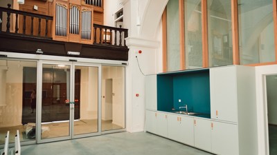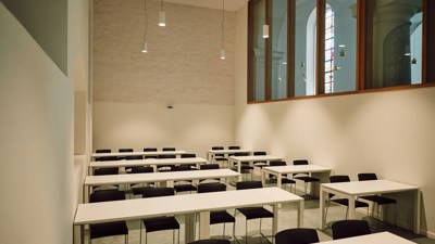 Het ontwerp zet in op polyvalentie en multifunctionaliteit. Ondanks de onderverdeling in deelruimtes blijft de bijzondere ervaring van de grote kerkruimte bewaard. De verschillende programmadelen versterken elkaar. Kinderen die naar de academie komen, vertoeven ook in de bibliotheek. De bibliotheek fungeert als een ontmoetingsplek midden in het dorp, een dorpspunt. In de centrale ruimte kunnen kleinschalige concerten georganiseerd worden waarbij piano en orgel een rol kunnen spelen.