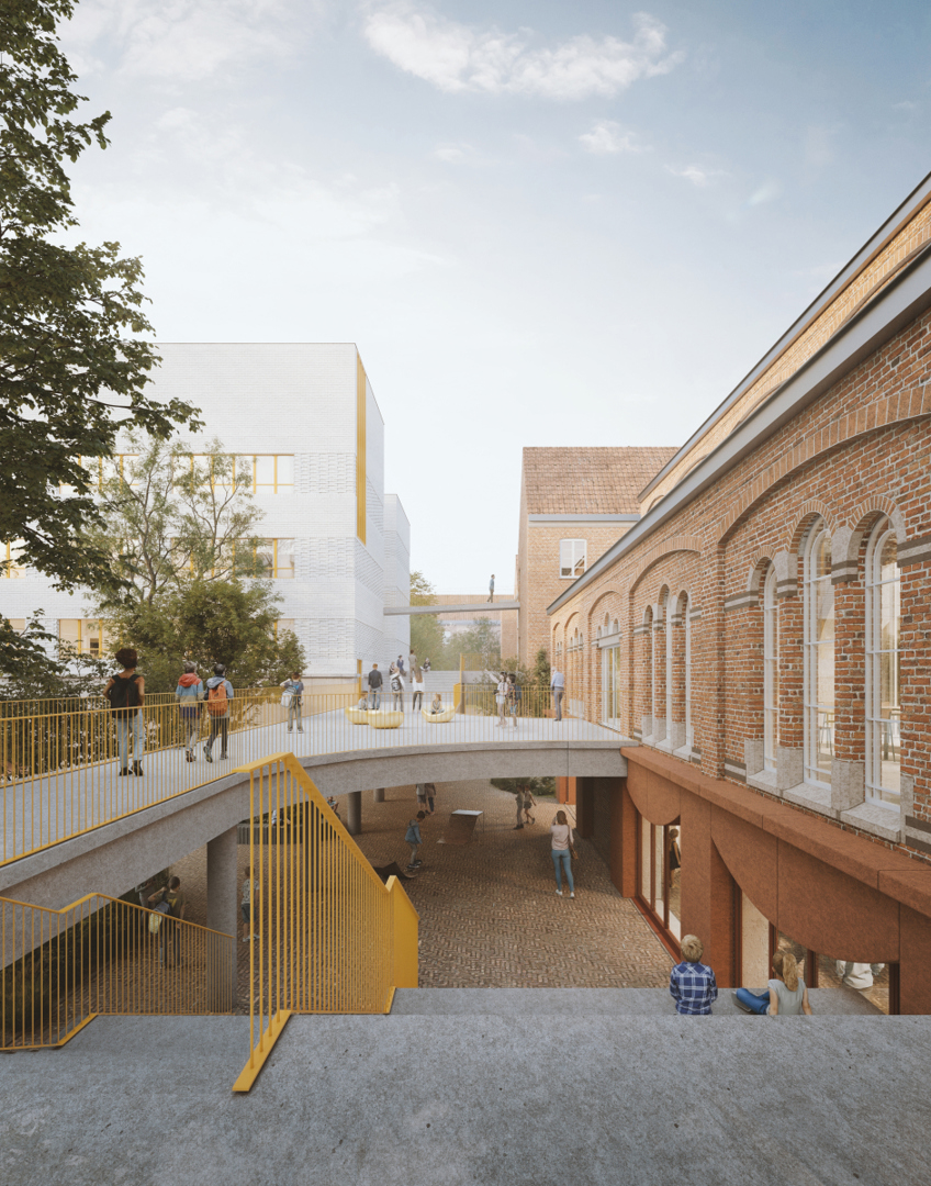 Het Hasseltse ontwerpbureau a2o architecten presenteerde nieuwe beelden van de geplande transformatie van het Sint-Victorinstituut in Turnhout. Het project vertrekt vanuit het bestaande schoolcomplex in het stadscentrum en combineert behoud, herbestemming en gerichte nieuwbouw. Zo ontstaat een toekomstgerichte leeromgeving die zich niet afsluit van haar omgeving, maar er expliciet de dialoog mee aangaat.