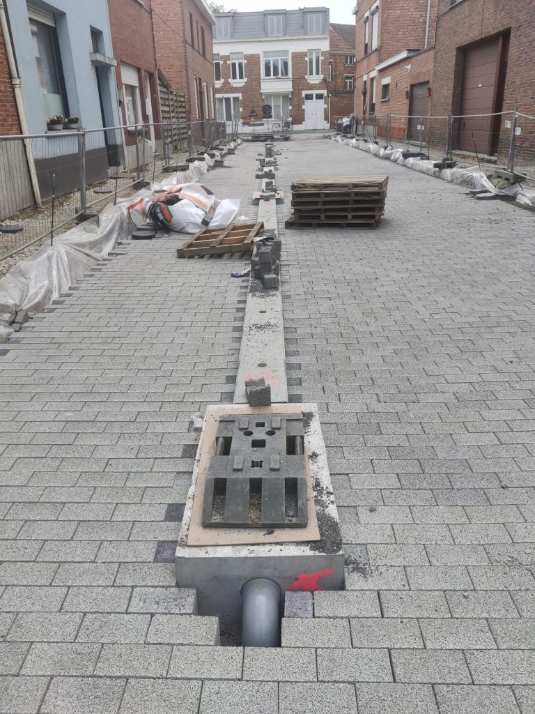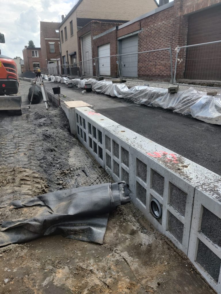 Deze geïntegreerde opbouw toont aan dat volwaardige infiltratie onder verharding perfect mogelijk is, ook in smalle stedelijke straten.