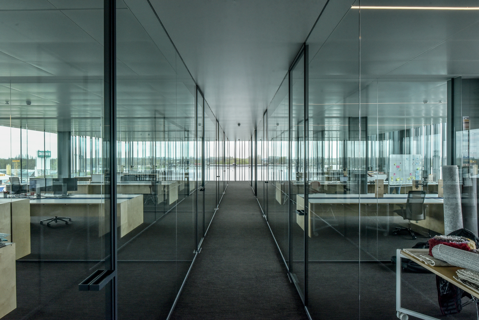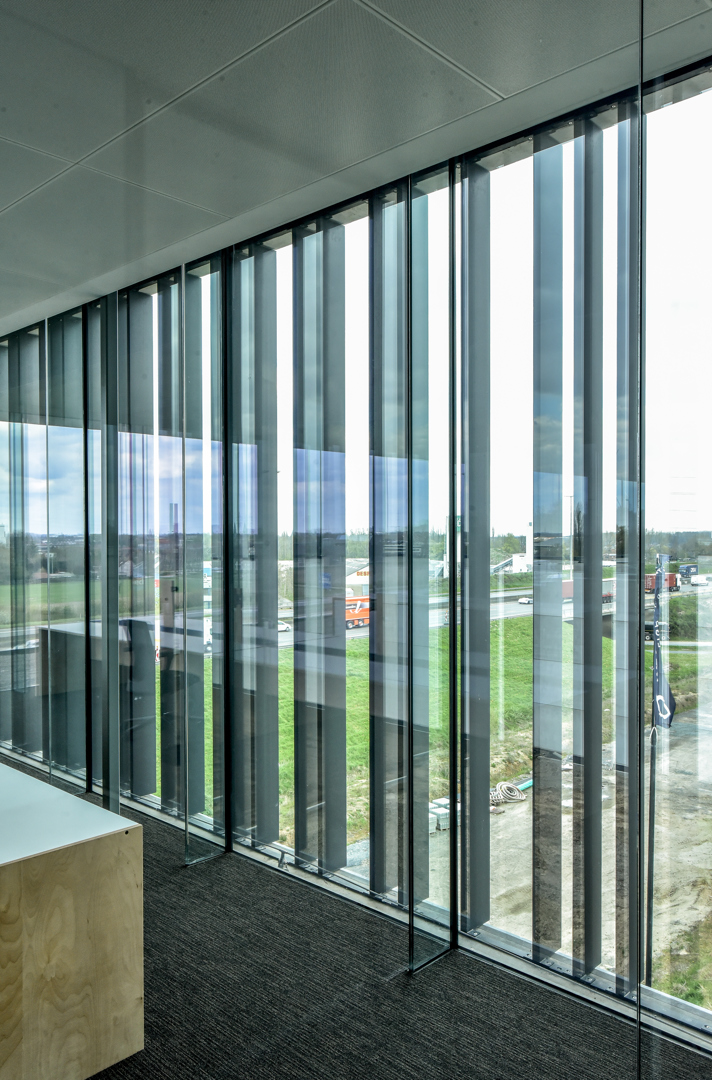 Het binnenklimaat is daarbij een sturende ontwerpfactor. In de winter kan zonlicht gecontroleerd bijdragen aan de warmtebalans, terwijl in de zomer de gevelaanpak en zonbeheersing precies bedoeld zijn om directe instraling en warmteopbouw te beperken. Die seizoenslogica maakt dat de kantoren helder en licht blijven zonder in warme periodes in een broeikas te veranderen. Het comfort wordt dus niet afgedwongen met zware installaties, maar voorbereid via de combinatie van transparantie, tempering en thermische inertie.