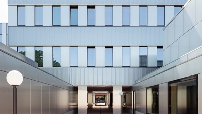 Net als alle projecten van FVWW kent het Zilverkwartier een sterke belevingsfactor. “Een wandeling”, noemt Wouter Willems het. “We steken veel tijd in het nadenken over hoe een gebouw zich prijsgeeft. Hier gebeurt dat geleidelijk, je beleeft de overgang tussen de verschillende gevels heel subtiel.” Voor de uitstraling van het gebouw haalde FVWW inspiratie bij de omliggende bebouwing, zowel de Agfa Gevaert-gebouwen als de woningen wat verderop. Willems: “We hebben gekozen voor een redelijk strenge architectuurtaal met een regelmatige ritmiek in de gevels, waardoor het geheel aansluit bij zijn omgeving. De beleving van de gevel is erg belangrijk.”