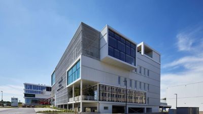 Bedrijventerrein Gosset in Groot-Bijgaarden was lange tijd de thuisbasis van Corelio/Mediahuis, dat er onder meer zijn drukkerij en de redacties van De Standaard en Het Nieuwsblad vestigde. Intussen is de gekende mediagroep verhuisd en wordt de site volop omgetoverd tot het meerlagige en multifunctionele bedrijvenpark West Gate. In de eerste fase van deze grootschalige reconversie kreeg het opslaggebouw aan de straatkant een volledige make-over, inclusief een nieuwe buitenschil, een transparante stalen voorzetstructuur en een optopping. Het troosteloze volume van weleer huisvest voortaan onder meer een hippe coworkingspace van Fosbury & Sons en de Belgische vestiging van farmareus AstraZeneca. Ook Futurn, de projectontwikkelaar achter West Gate, heeft er een uitvalsbasis. Het ontwerp is van de hand van KRAS Architecten.