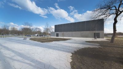Het Wilrijkse plein werd bekroond in de categorie ‘Small Scale Precast’. De wandel- en looppaden, waaronder ook deze voor de hoofdingang van het nieuwe complex, werden ingekleed met water passerende parkstenen van het type Aquaflow, geproduceerd door Stradus Infra. Het betreft een combinatie van twee modellen met een vijfhoekige vorm. Met het oog op een optimaal comfort voor voetgangers en andere zwakke weggebruikers ontwierp ontwerpbureau Stramien met behulp van deze stenen een drempelloos inkomplein. De keuze voor deze stenen werd volgens Evert De Baere van Stramien ingegeven door het losse patroon van deze bestrating. Het voegenspel is richtingloos en benadrukt zo het vrije gebruik van de inkomzone.