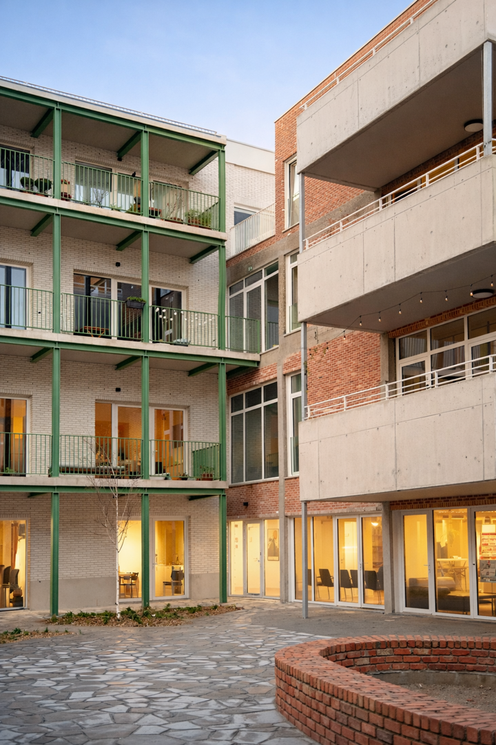 Met de officiële opening van cohousing De Wasserij in Oud-Berchem is een nieuw woonproject opgeleverd dat architecturale ambitie koppelt aan een uitgesproken coöperatief woonmodel. Het project werd ontworpen door Stramien en gerealiseerd als het eerste nieuwbouwproject van wooncoop in Antwerpen. De Wasserij maakt deel uit van de grotere herontwikkelingssite De Wastuin, op de voormalige industriële wasserij Goossens, en illustreert hoe collectief wonen vandaag kan bijdragen aan stedelijke verdichting met kwaliteit.