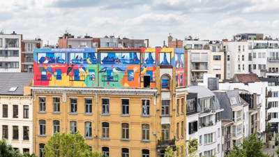 Street art project op Antwerpse Theaterplein als statement om woningnood in steden op te lossen