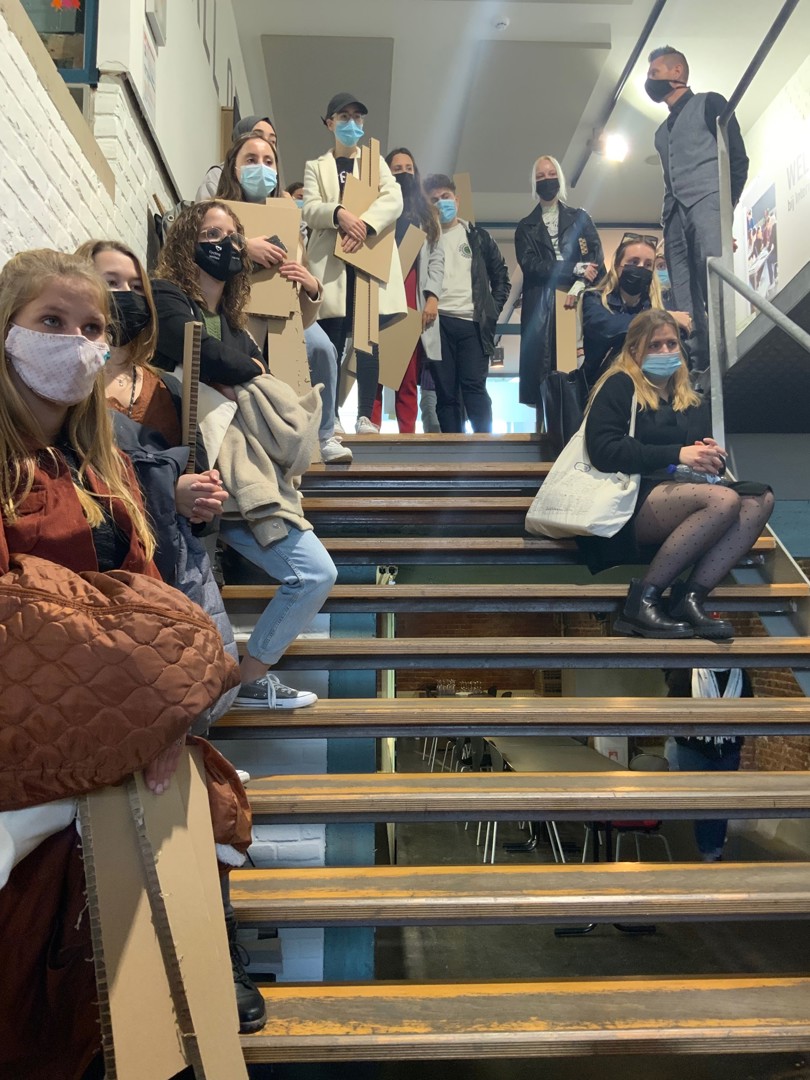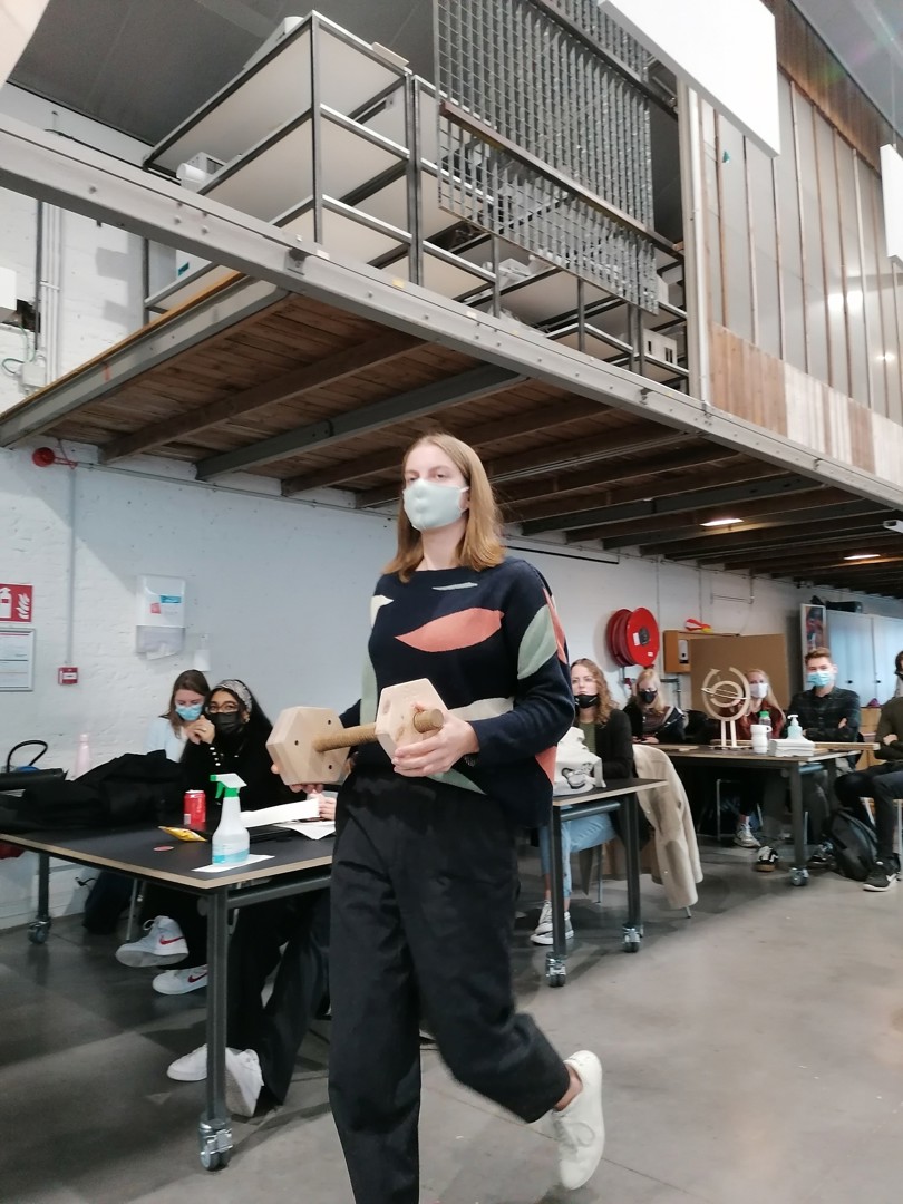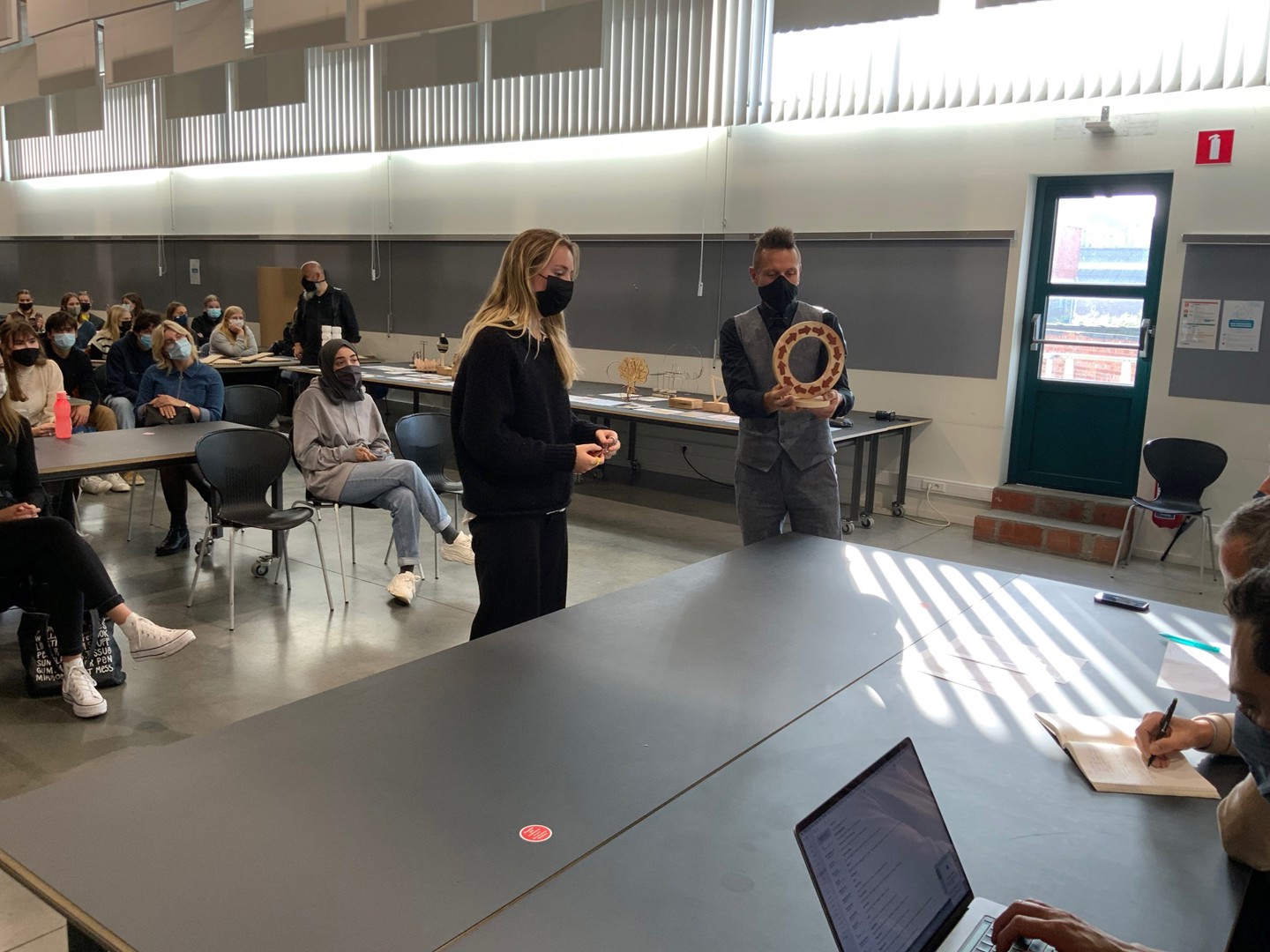 - Ilias Van Hoof: ook deze naamloze award werd op papier voorgesteld. Het ontwerp stond immers nog bij Van Hoof thuis en die kon zelf niet aanwezig zijn omdat hij genietend van een topsportstatuut aan het snowboarden was in het buitenland. De award bestaat uit staal – een circulair materiaal in de zin van letterlijke duurzaamheid; staal gaat enorm lang mee – en hout: twaalf stalen plaatjes gemaakt uit overschotten uit het werkhuis van de hogeschool zijn in een sokkel geschoven. Elke winnaar kan zijn gepersonaliseerde plaatje er dus gemakkelijk en zonder hulpmiddelen uit halen om het voor eeuwig bij te houden. Hij krijgt er ook een houten blokje bij om het plaatje in te plaatsen. Elk stalen plaatje heeft een cirkelvormige opening die verwijst naar circulariteit.