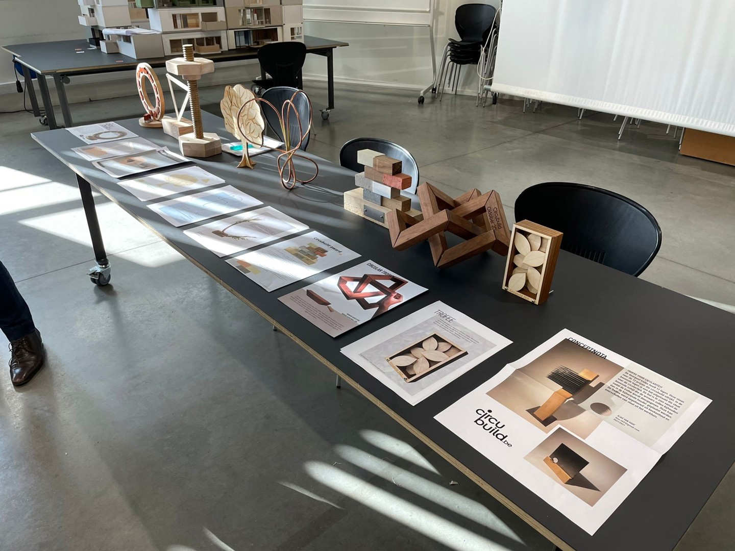 Omdat de huidige Circubuild-award inmiddels al anderhalf jaar gebruikt wordt als wisselbeker – met Waldo Galle als meest recente laureaat – en stilaan zijn beste tijd heeft gehad én omdat Circubuild ook een Waalse versie wil lanceren van de prijs die pionierswerk op het vlak van circulair bouwen in de kijker zet, vroeg de redactie van Circubuild net als zo’n twee jaar geleden aan Stefan van Ouytsel, lesgever aan de hogeschool Thomas More – campus Mechelen, om een award te ontwerpen.