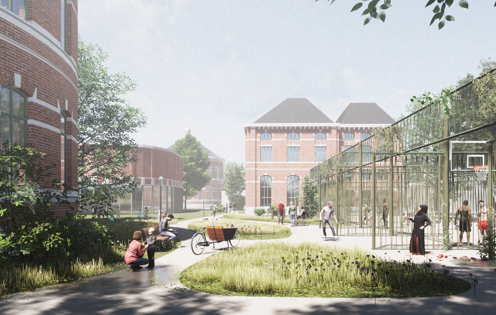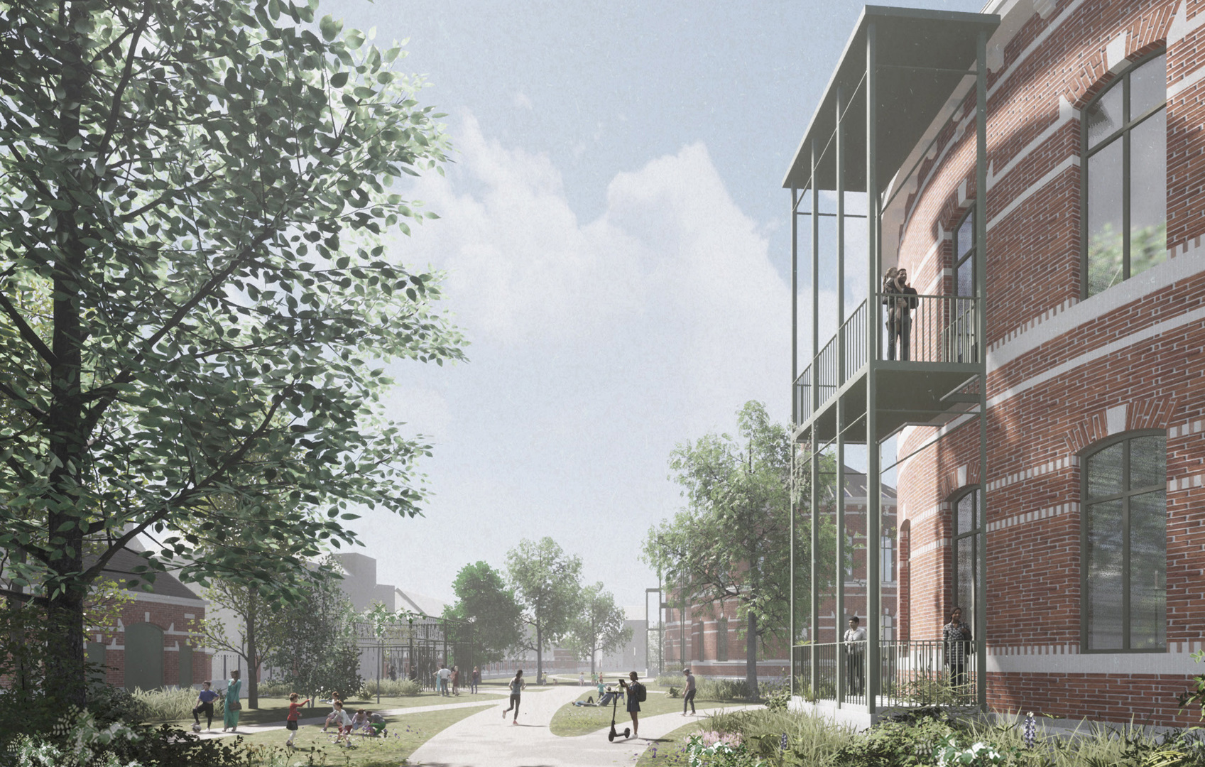 Nieuwe gaanderijen, verbindende elementen en zorgvuldig geplaatste nieuwbouwvolumes ondersteunen deze historische structuur zonder haar te overheersen. Samen creëren ze een nauw afgestemde dialoog tussen erfgoed en hedendaagse architectuur. Hierdoor ontstaat een evenwichtig geheel waarin het patrimonium niet wordt bevroren, maar geactiveerd als ruggengraat van de toekomstige stadsontwikkeling - klaar voor een breed en duurzaam gebruik.