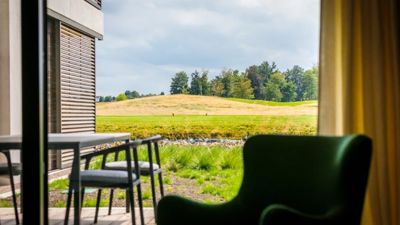 De architectuur en de lay-out van de Sterea-gebouwen zijn volledig geënt op het groene kader waarin ze zich bevinden. Zowel de collectieve wooneenheden als de urban villa’s zijn optimaal geïntegreerd in het natuurrijke binnengebied. “Dit is onder meer te danken aan onze intensieve samenwerking met landschapsarchitect Bas Smets, waarbij we onderzocht hebben hoe we alle gebouwen konden onderbrengen in groene ‘kamers’. Dit om een harmonische overgang naar het overweldigende golflandschap te creëren, waarvoor we dan weer konden rekenen op de expertise van de gerenommeerde golfbaanarchitect Bruno Steensels. Hij spitste zich minutieus toe op de vormgeving en dimensionering van het terrein, waardoor er unieke perspectieven en hoogteverschillen ontstonden die hun stempel drukken op de ruimtelijke beleving. De 6,5 kilometer lange golfcourse is al twee jaar open en kan zowel nationale als internationale liefhebbers bekoren. Het hotel zal dan weer een belangrijk oriëntatiepunt worden voor de buitenwereld en zal in dat opzicht een waardevolle bijdrage leveren aan de ontsluiting van de site. Het is eigen aan ons bureau om naar een stedenbouwkundig-morfologische samenhang te streven, met de bebouwing als stedelijk artefact. Dat is ook in dit geval uitstekend gelukt.”