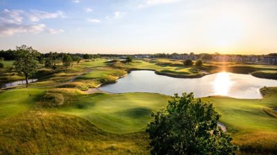 Grandeur, aanzien, prestige. De monumentale hippodroom van Sterrebeek was meer dan zestig jaar lang een begrip in de regio. De legendarische renbaan werd opgetrokken in 1937, maar floreerde vooral tussen 1952 en het einde van de jaren 80. Ze stond bekend als de beste galoppiste van het land, maar had hoe langer hoe meer te lijden onder de tanende interesse voor de paardensport. De rest van het verhaal laat zich raden: de gebouwen raakten in verval, de eigenaar ging failliet en de 75 hectare grote site werd te koop gezet. Gelukkig pikten Petra Noé en de Oostendse ondernemer Frank Monstrey de draad in 2004 opnieuw op. Het ambitieuze koppel wist de vergane glorie van de voormalige hippodroom in ere te herstellen, zij het niet via een renovatie of een klassieke reconversie. Noé en Monstrey maakten schoon schip en toverden met Sterea een meer dan waardig alternatief uit hun hoed: een exclusief golfresort met achttien holes, ingebed in een waterrijke parkomgeving en omgeven door circa tweehonderd wooneenheden (penthouses, parkresidenties, assistentiewoningen en eengezinswoningen), een kantoor, zeven urban villa’s en een luxehotel met een negentigtal kamers, vergaderruimte en restaurantfaciliteiten.
