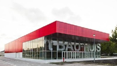 In 't Bau-huis zijn alle programma’s ondergebracht in één doos. Het geheel, oud en nieuw, wordt ingepakt met translucente rode polycarbonaatplaten. De nieuwe huid laat toe de bestaande hal te isoleren en het complex een expressieve aanblik te geven langs de spoorweg. De inwendige activiteit wordt zichtbaar en ’s nachts letterlijk uitgestraald.