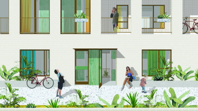 De centrale ontwerpvraag was dubbel: hoe kunnen mensen dichter bij elkaar wonen, op een comfortabele manier, en hoe kan dat kind- en gezinsvriendelijk zijn? De oplossing vonden de architecten, URA Yves Malysse en Kiki Verbeeck, in slim ruimtegebruik. Als de ruimte beperkt is, is delen de sleutel. Het woonproject is zo ontworpen dat het dezelfde kwaliteiten heeft als een huis met een tuin, door een eigen volwaardige woning aan te vullen met veel gemeenschappelijke binnen- en buitenruimte. Het Autonoom Gemeentebedrijf Stadsontwikkeling Leuven (AGSL) deed bovendien beroep op het kennis- en expertisecentrum Kind en Samenleving om de noden en wensen van gezinnen met kinderen in het ontwerp te verwerken.