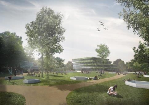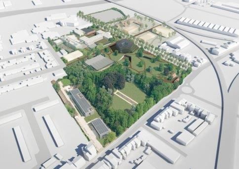 In de visie van het ontwerpteam wordt vertrokken vanuit de bestaande grondwaterhuishouding en worden de kansen om op korte termijn een waardevol ecologische en recreatieve site te creëren benut. De dubbele laan (Graaf Karel de Goedelaan), opgespannen tussen de vallei van de Leie en de Marksesteenweg vormt de ruggengraat van het gebied. Het nieuwe gebouw is te gast in de groene ruimte leunend aan de laanstructuur. De groenruimtes zijn ecologisch interessante velden die tot aan de gevel lopen en hun weg verticaal verder zetten in en aan het gebouw.