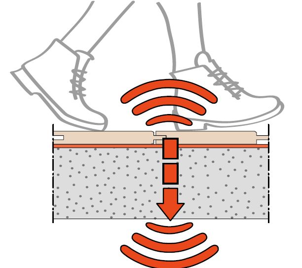 De geluidsoverlast die mogelijk teweeggebracht wordt door loopgeluiden is niet alleen afhankelijk van het type schoeisel, maar ook – en vooral – van de vloerbedekking. De sonoriteit van de vloerbedekking kan als aangenaam of storend ervaren worden en beïnvloedt de kwalitatieve perceptie van de afwerking (eerder ‘goedkoop’ dan wel ‘degelijk’). Deze perceptie is niet louter afhankelijk van de geluidsintensiteit, maar ook van de aanwezigheid van specifieke (hoge of lage) tonen in het geluid dat afgestraald wordt bij het belopen van de vloer. De bepalende parameters zijn de massa, de stijfheid, de hardheid van het vloeroppervlak en de plaatsingswijze van de vloerbedekking op de ondergrond.