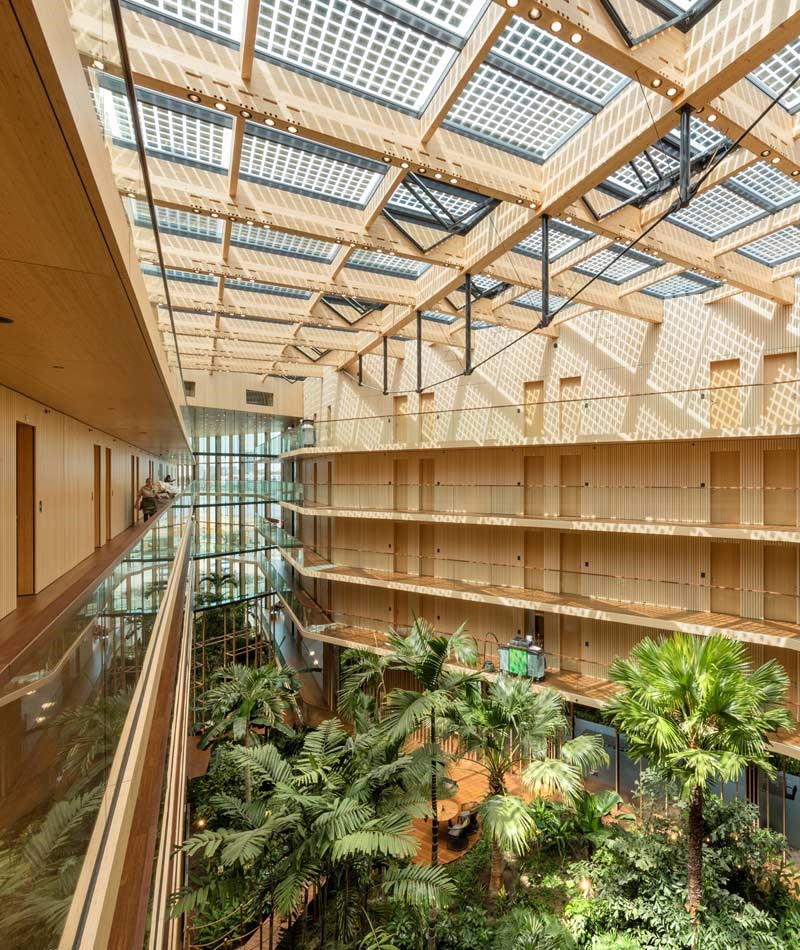 Een houten gebouw heeft een positief effect op de gezondheid en het welzijn van de mensen die er in wonen of werken. Hout heeft namelijk de bijzondere eigenschap dat het vocht uit de lucht kan opnemen of afgeven. Dat helpt het binnenklimaat in balans te houden qua luchtvochtigheid, maar ook qua temperatuur, wat het niveau van comfort verhoogt.