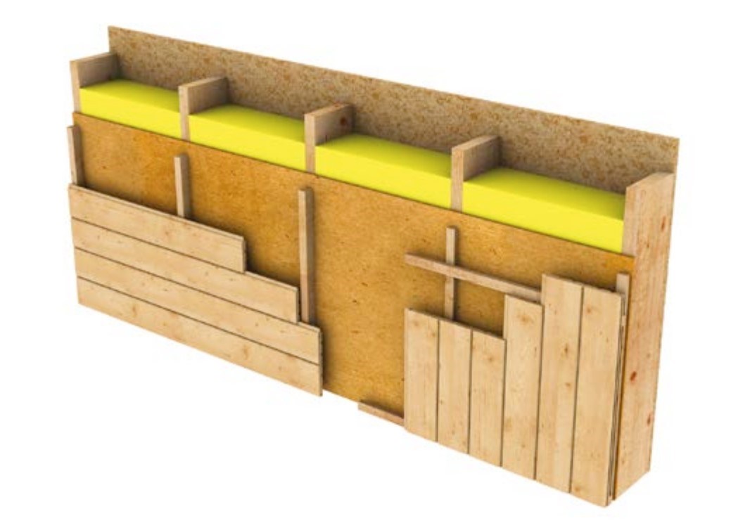 - de gevelbekleding moet opgebouwd zijn uit douglas (500 kg/m³), lariks (655 kg/m³) of eik (700 kg/m³)(3)