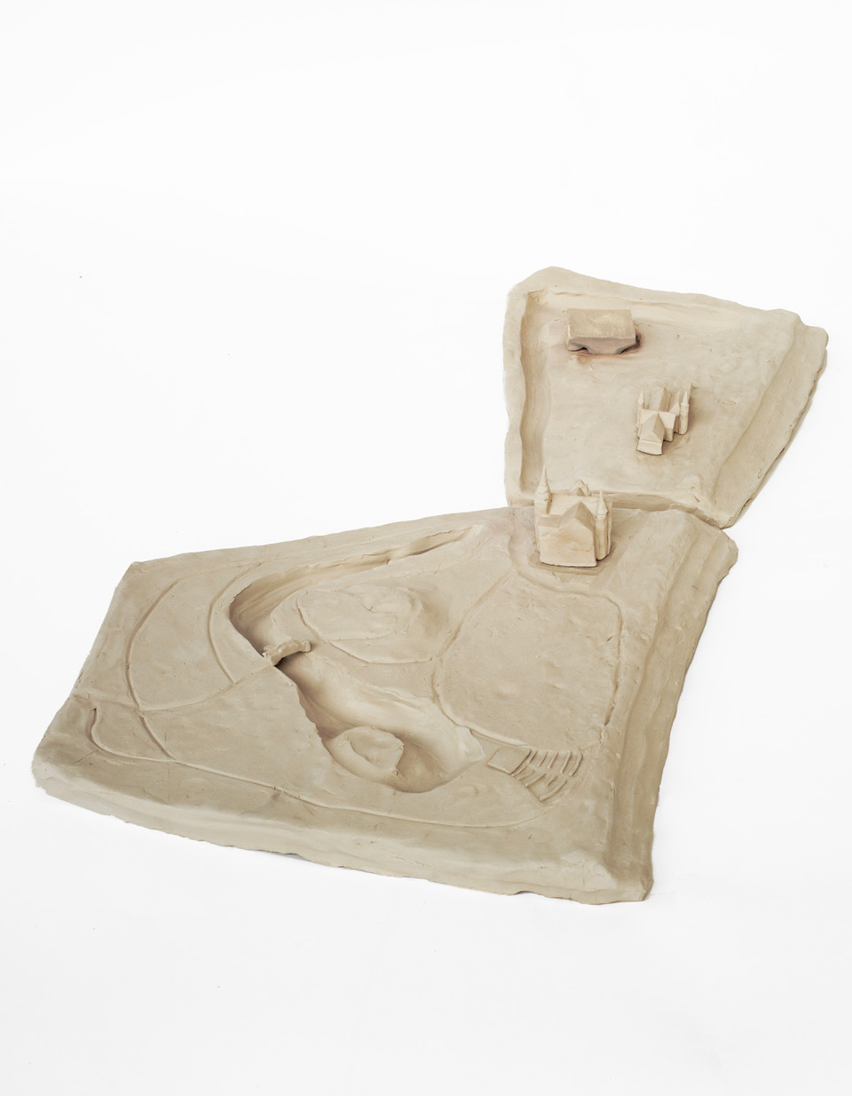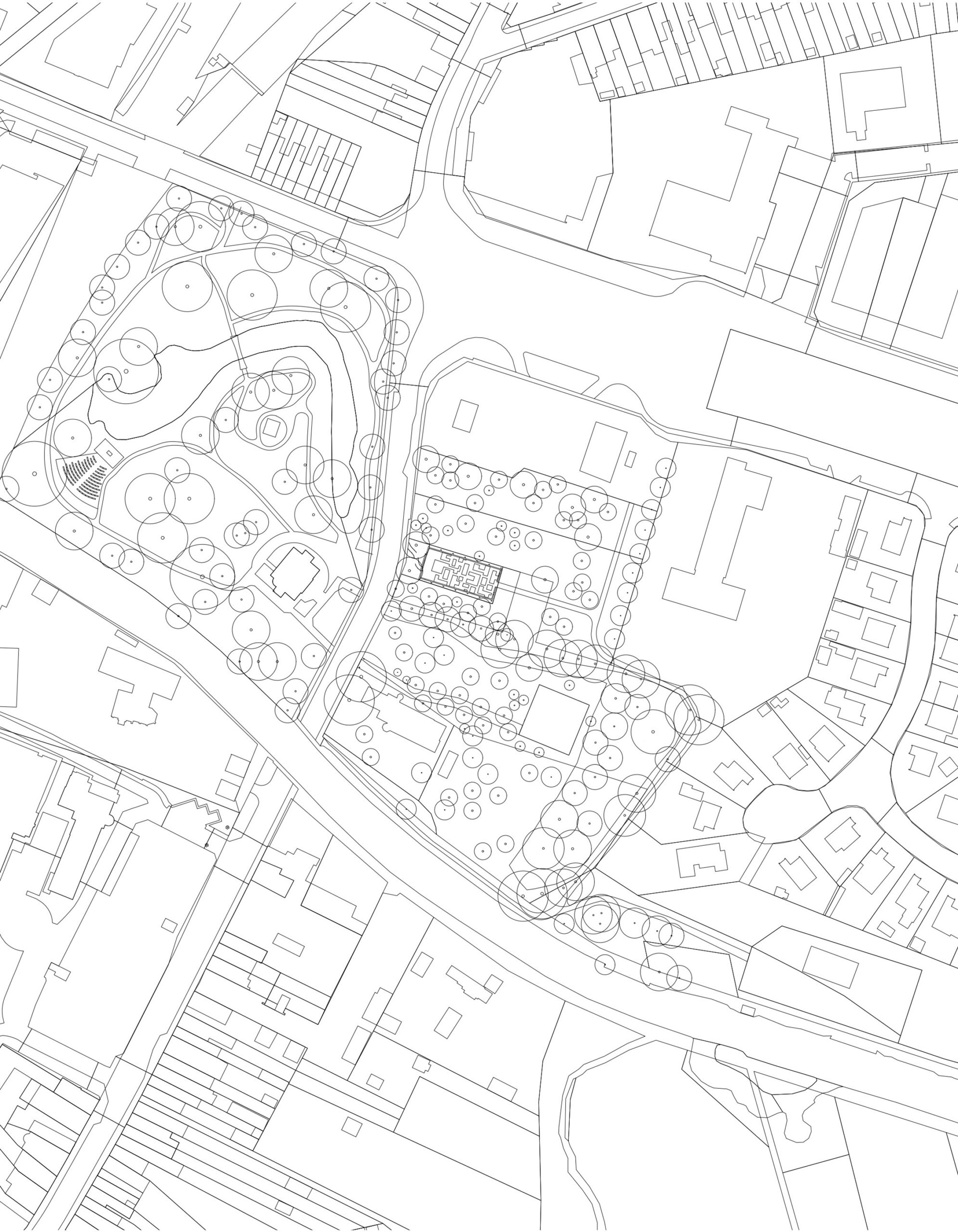 De aangewezen plek voor de kerk ligt langs de Noordelijke toegangspoort, pal op de oude Vesten. Op deze historisch beladen plek worden binnen de perimeter van een vierkant drie ruimtes opgetrokken uit gerecupereerde baksteen. De door de tijd uitgewiste verdedigingsheuvel wordt plaatselijk gereconstrueerd in de vorm van een aarden berg rondom de drie volumes. Afgesneden door het vierkant vormt de berg de natuurlijke bekisting voor een gewelf. De context biedt de materialen voor de ingreep. De aarde voor de heuvel is afkomstig van de uitdieping van de gracht. De bestaande kerk wordt gerecycleerd als granulaat voor het cyclopisch beton waarmee de bekisting wordt aangevuld tot aan de bovenzijde.