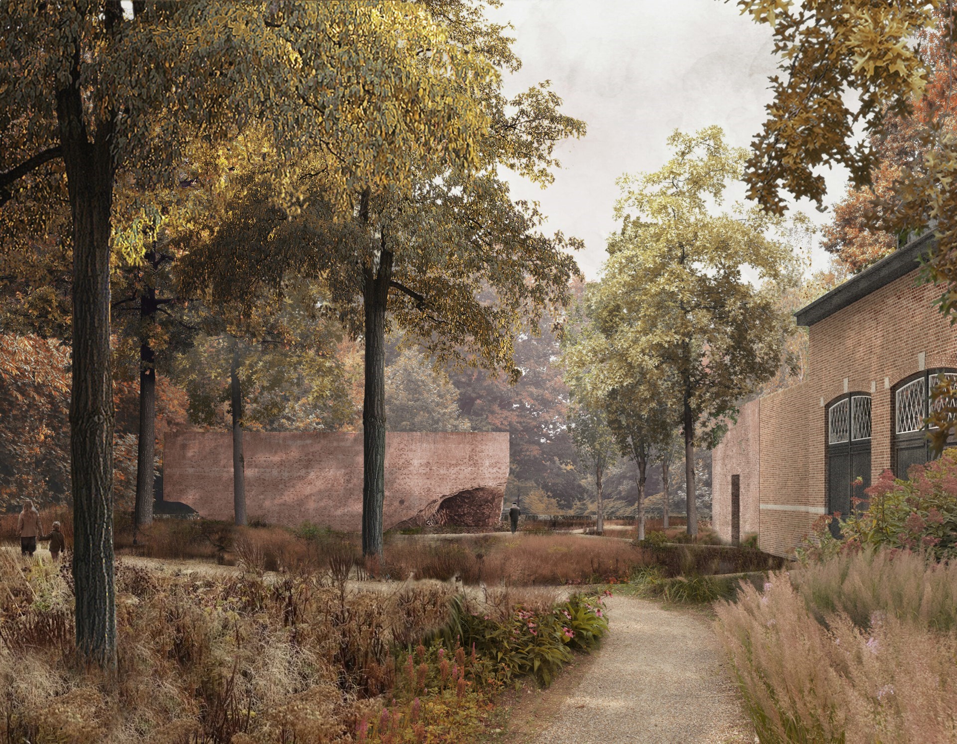 Na het uitharden en ontkisten van het beton wordt de aarde eronder weggegraven, waardoor een gewelf ontstaat rustend op drie poten waarlangs de bakstenen volumes worden ontsloten. Het resultaat is een gewelfde spirituele ruimte die bescherming biedt tegen de elementen. Een intieme kapel kan gebruikt worden voor kleine ceremonies. De uitgedroogde grachten worden opnieuw aangesloten op de Kleine Nete. En rondom de kerk wordt een sublieme verborgen tuin aangelegd.