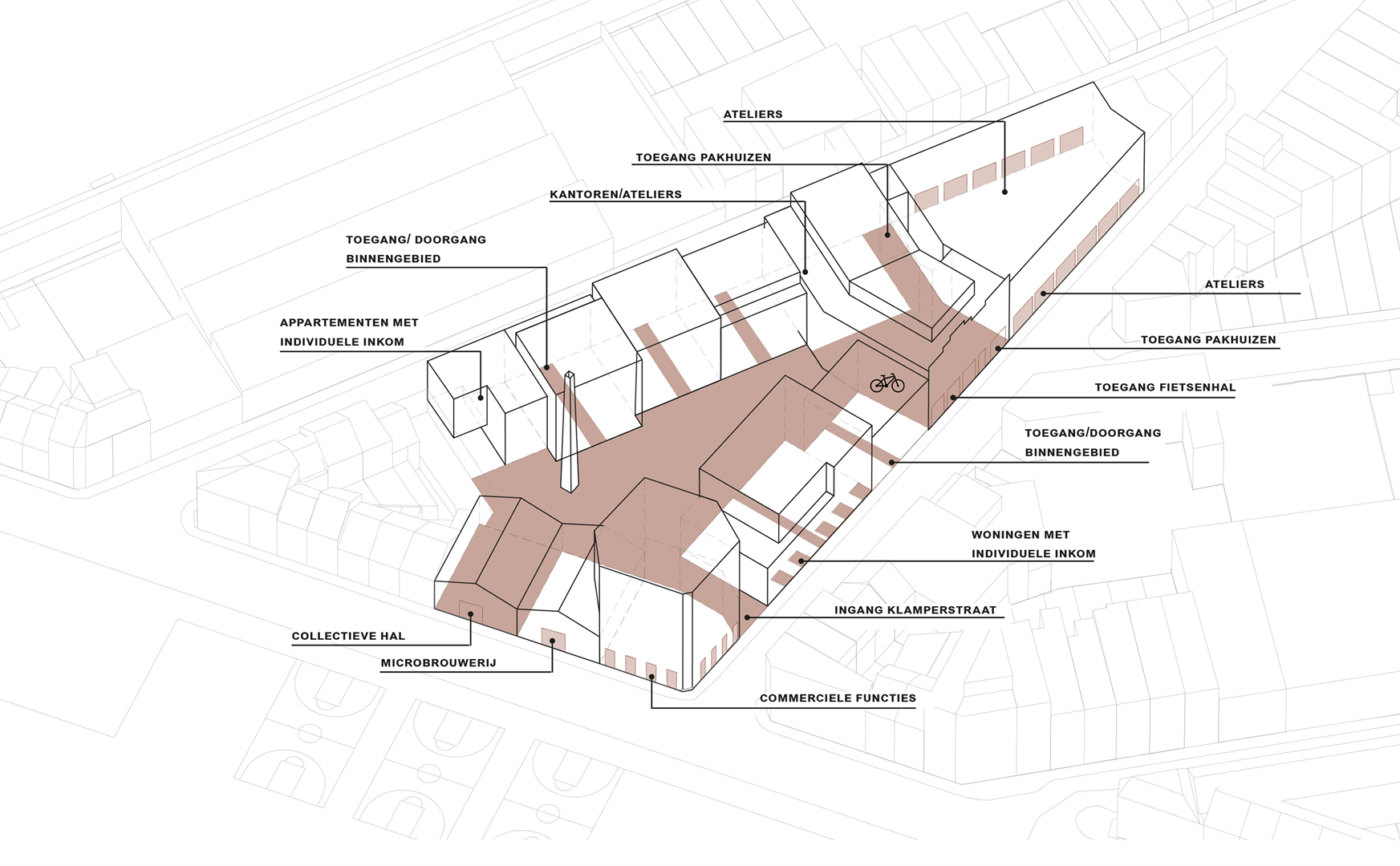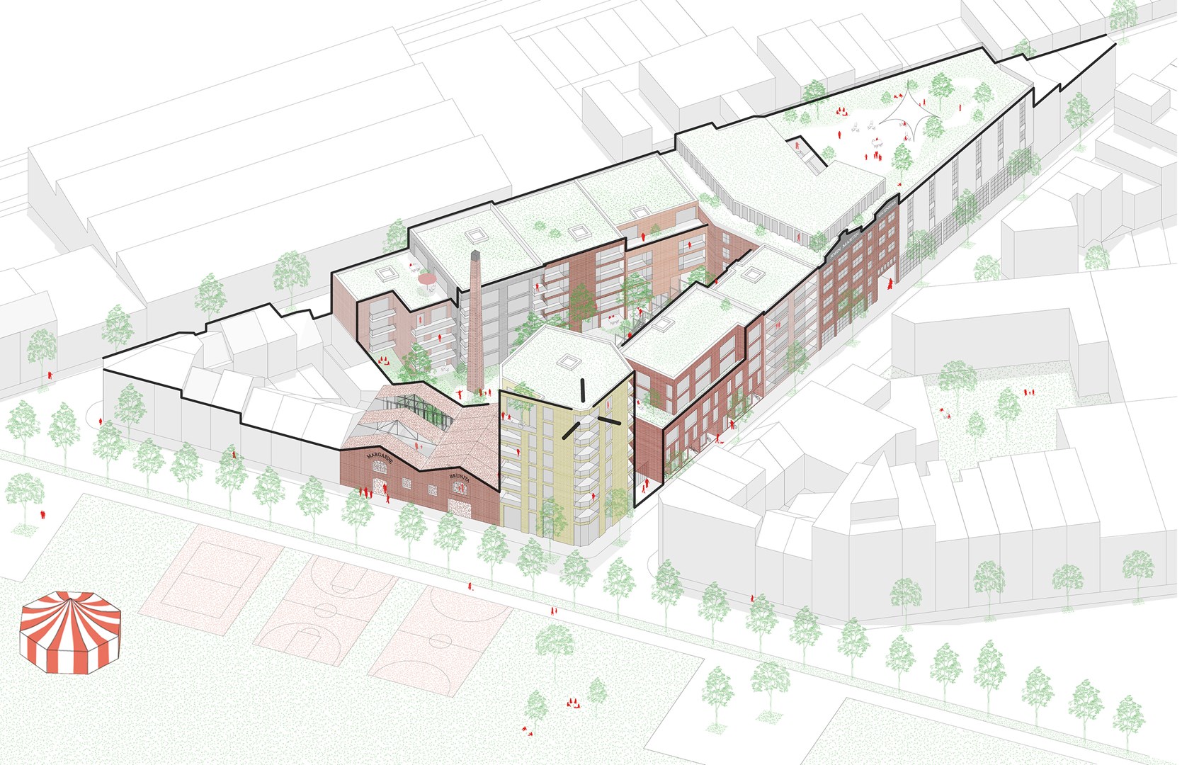 The Bunch: brouwerij in Stuivenbergwijk wordt collectieve woonhub met groene ontmoetingsruimtes (bold architecten)