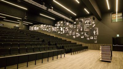 Een van de paradepaardjes is het auditorium, een houten doos verdeeld over twee etages met veel gebruik van zwart en dennenhout, die allebei verwijzen naar het mijnverleden. In de mijnen werden immers pijlers gemaakt van dennenhout en de aanwezigheid van steenkool had ook te maken met de dennenbossen die zich daarboven bevonden.