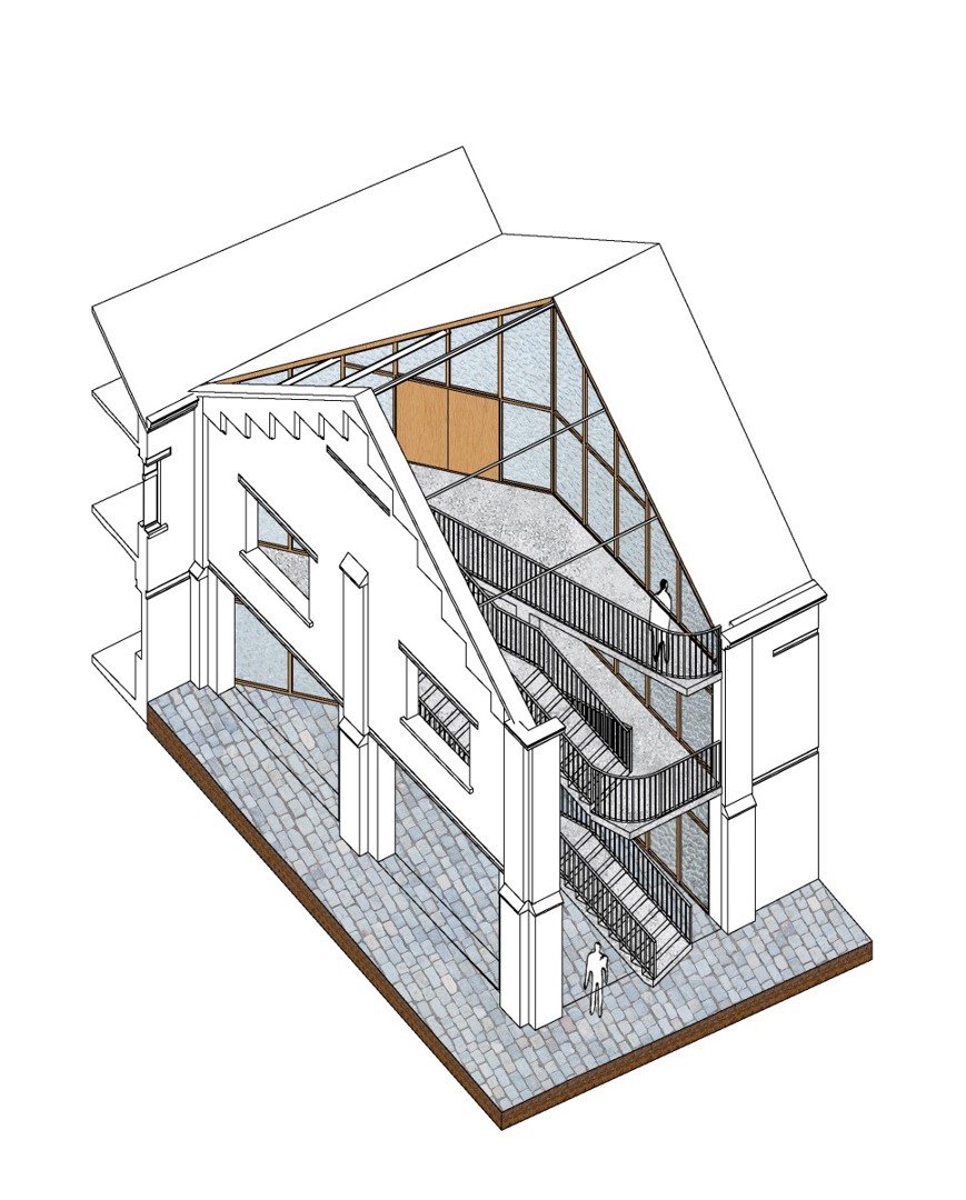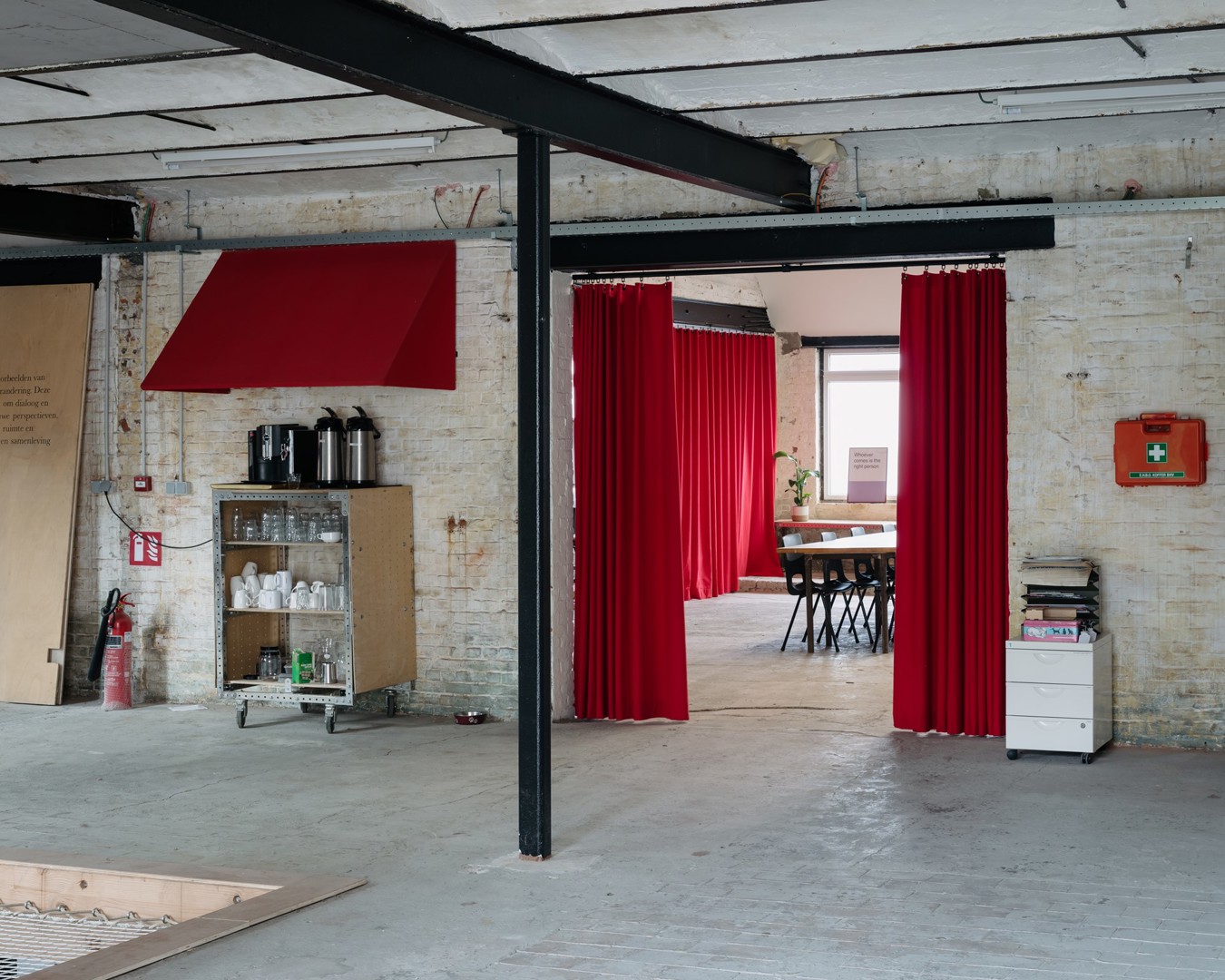 Het deelrestaurant en de zolder, samen goed voor zo'n 350 m², worden op dit moment nog volledig ingericht met ecologische en recuperatiematerialen en circulaire energiesystemen in samenwerking met ontwerpbureau ONBETAALBAAR.